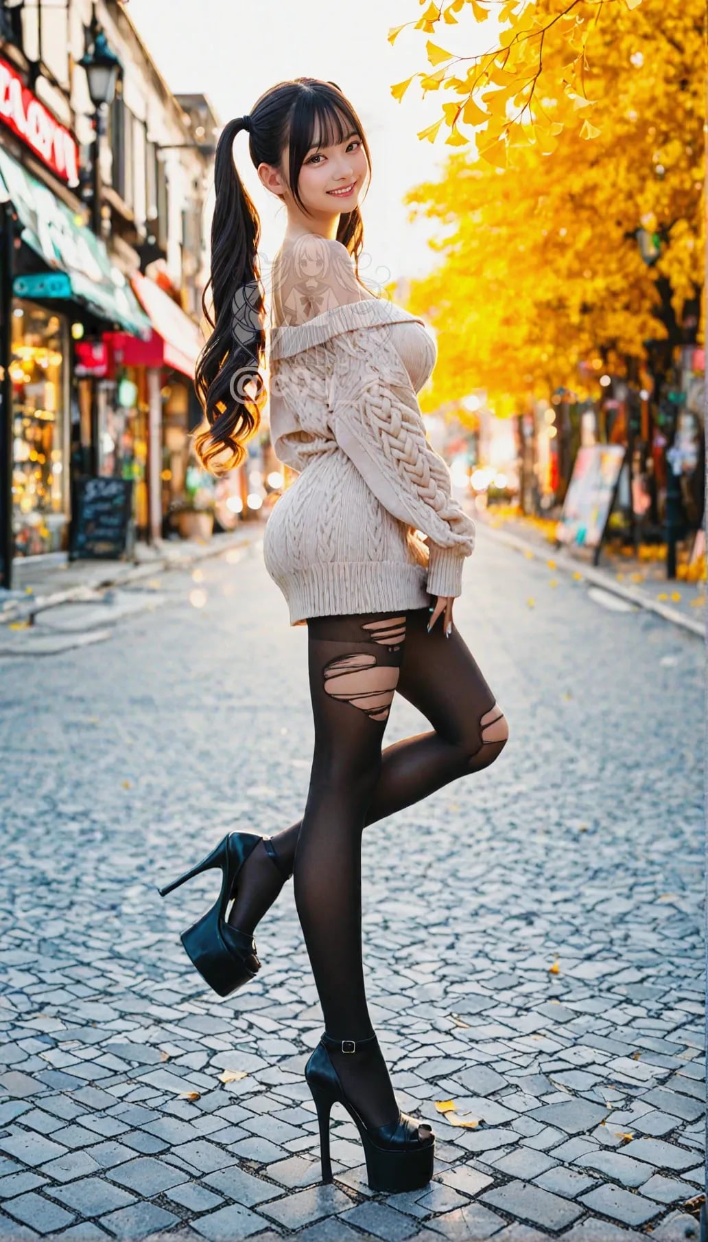 銀杏並木の公園で、秋の陽菜々がふらっとお散歩。