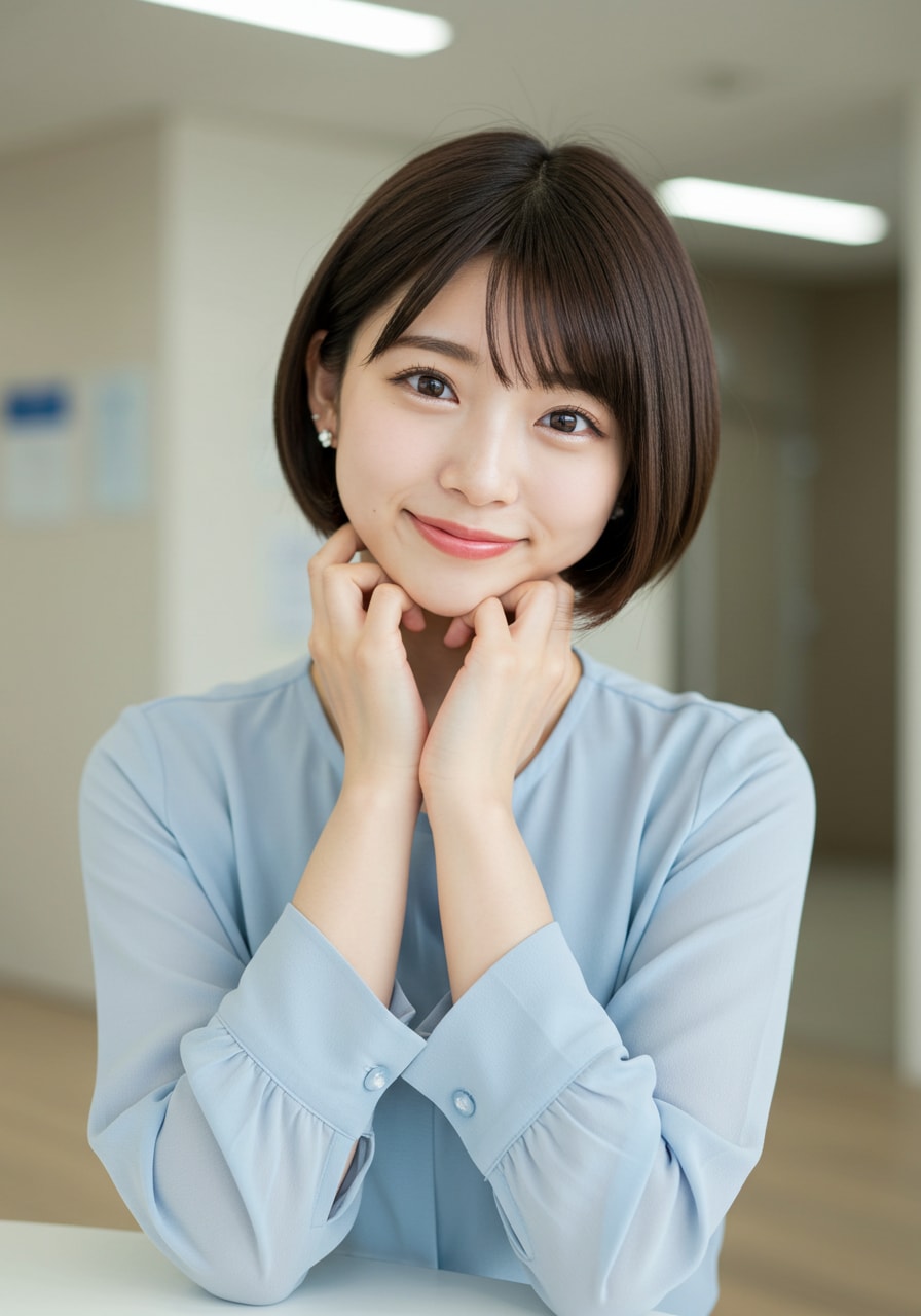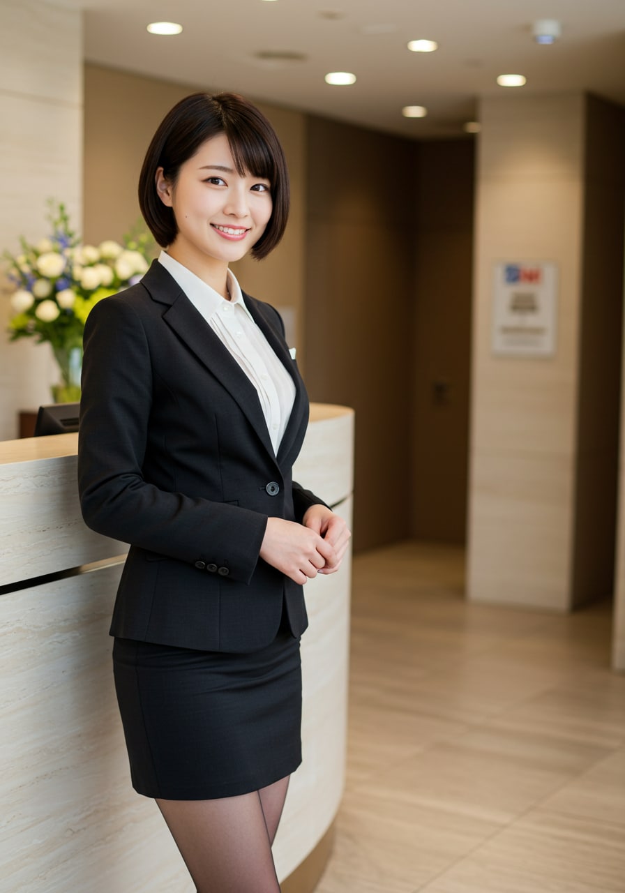 呉服屋のサトミさんに、受付嬢役になってもらい、ただただキュートな仕草をしてもらいました。