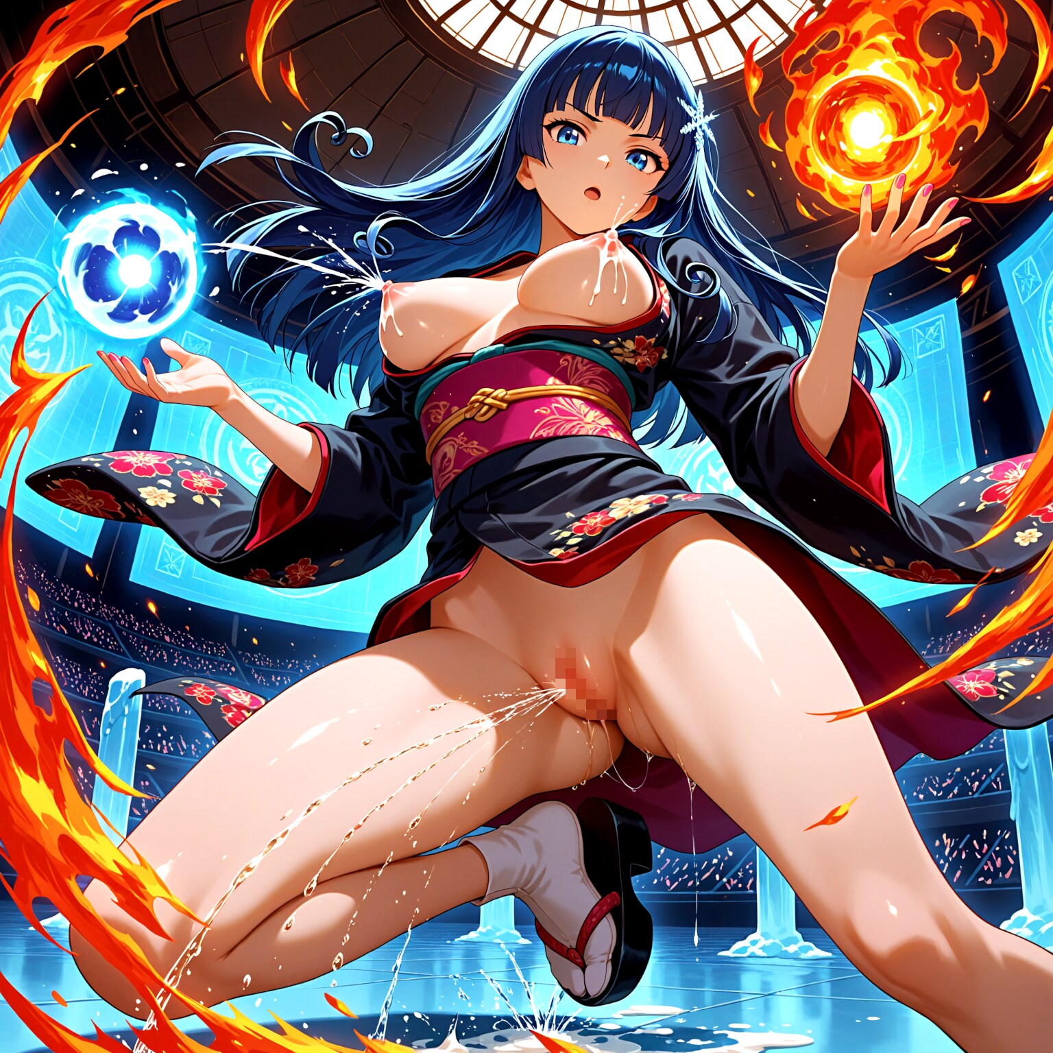 ・魔法陣はあえて使用せず、両手に氷と炎の魔法をしっかりと描いた