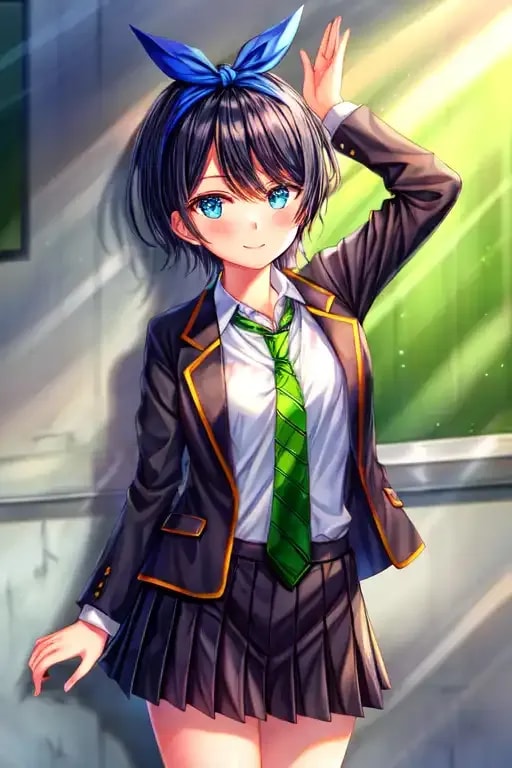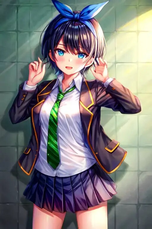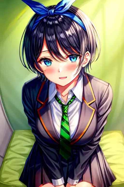 ショートヘアと特徴のあるリボンがカワイイですね。