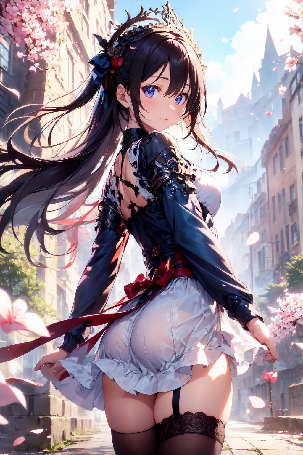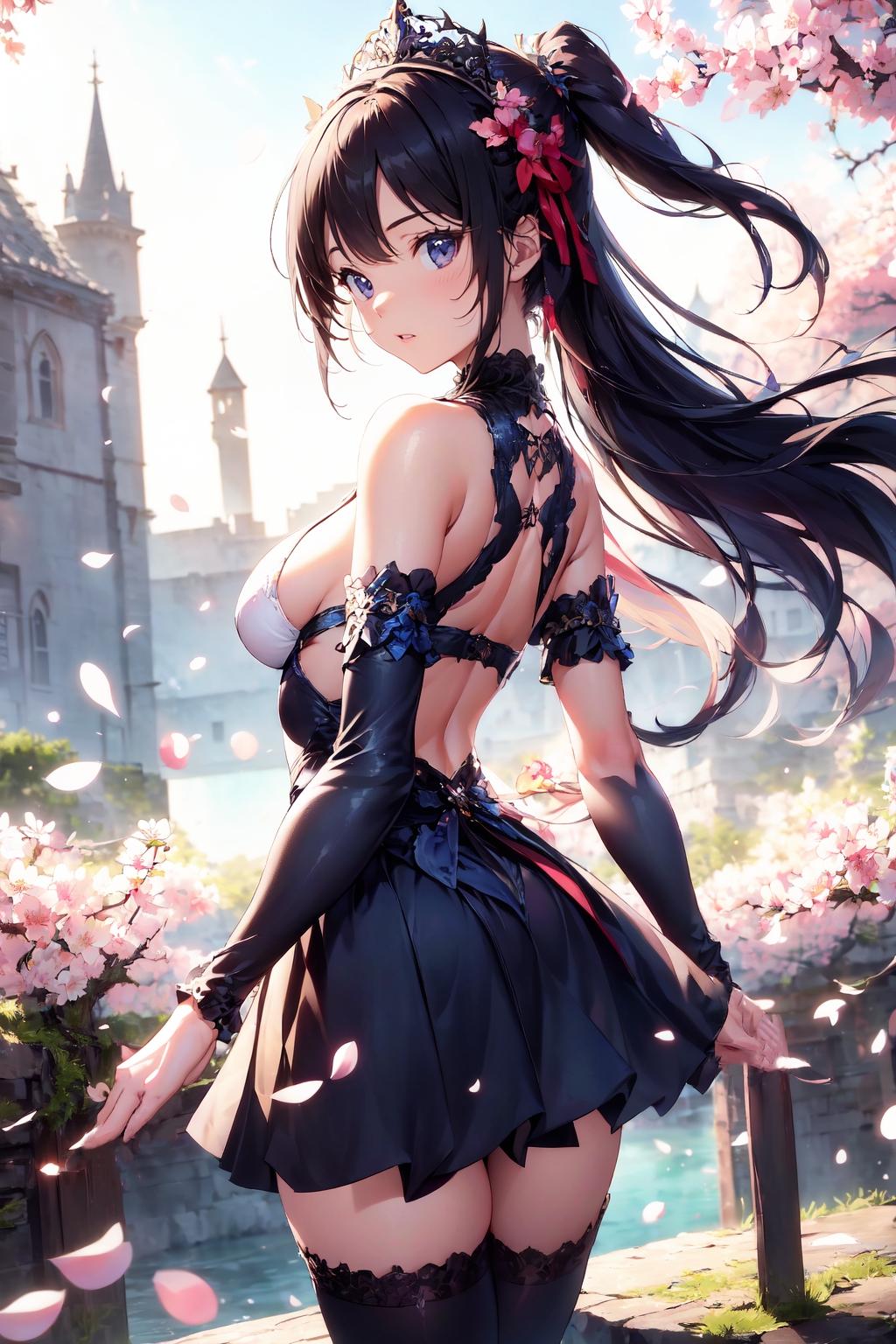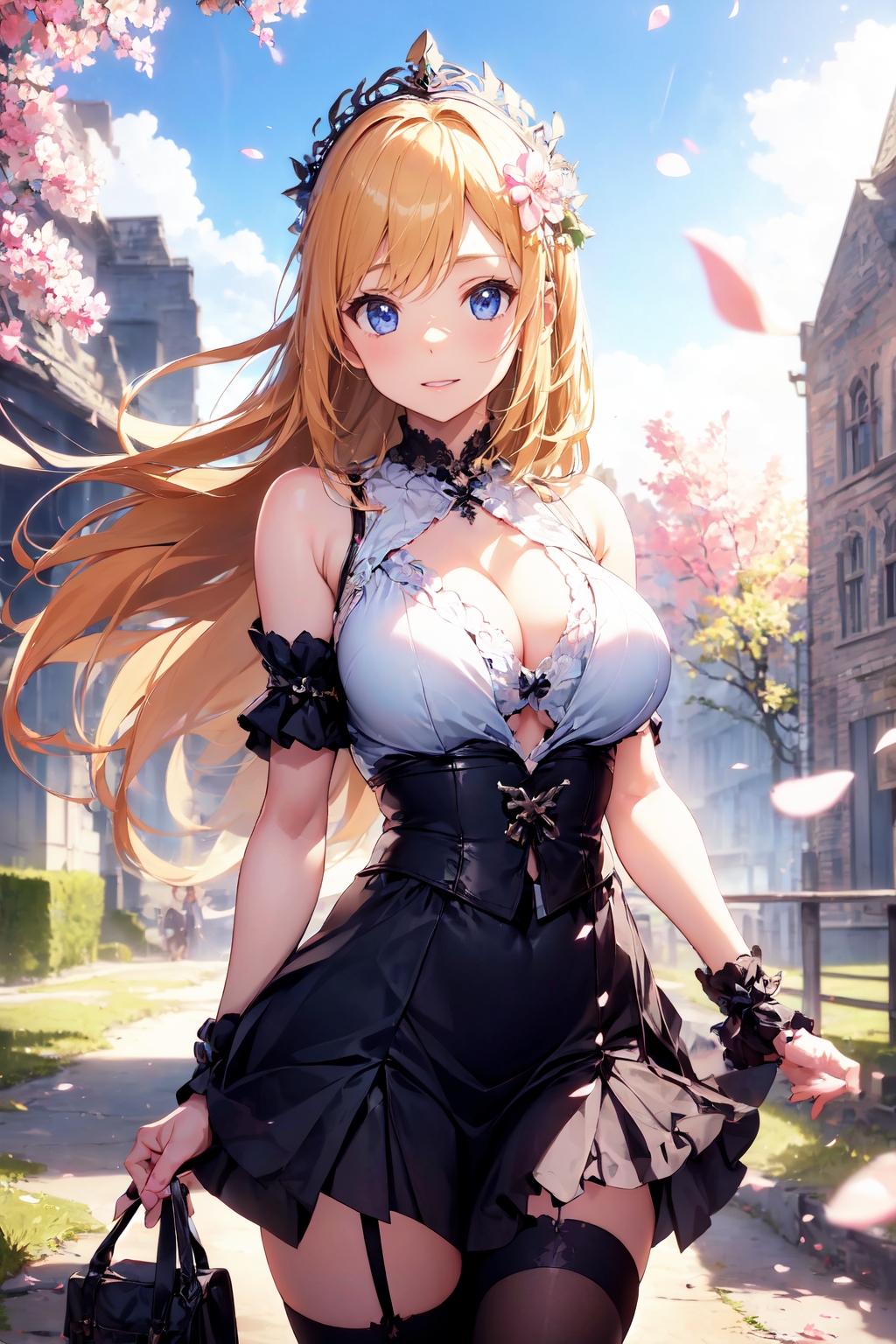 tensor.artのプロンプトを借りて、ゴスロリとゴシック建築と桜を組み合わせました〜