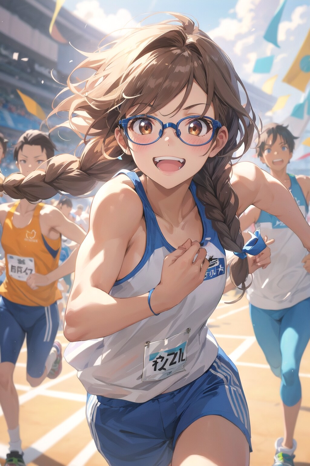 VEGA→V4B(5枚目まで)とPixaiさん(6枚目以降)で作った画像です。VEGAはロードレースをやってる感がとても良く出るのですがタスキが肩にかからず腰に巻いてるものが出がちで、逆にPixaiさんで作った方はタスキは出るのですがレースをやってる感がうまく出せず他のモデルにしたらタスキが出ない、とかなかなかうまく行かないですね。なんか他に良い手立てがあればいいのですが。あとユニフォームも工夫がいりそう。さきちゃんは良いのでまた作りたい題材ですね。