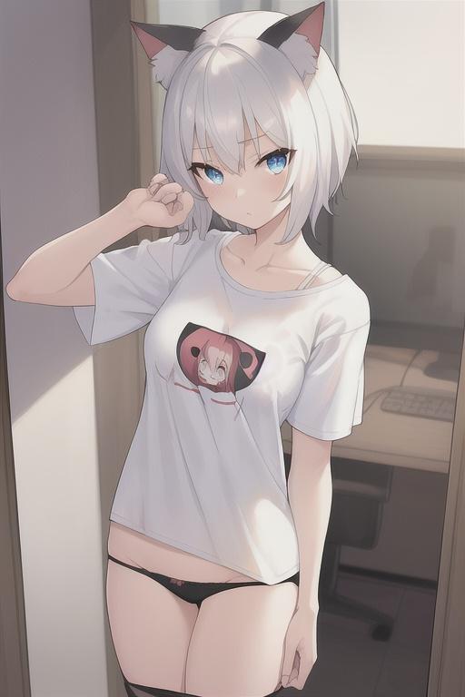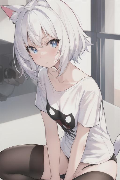 猫耳がピクピクと動く、視点は手を伸ばして触る