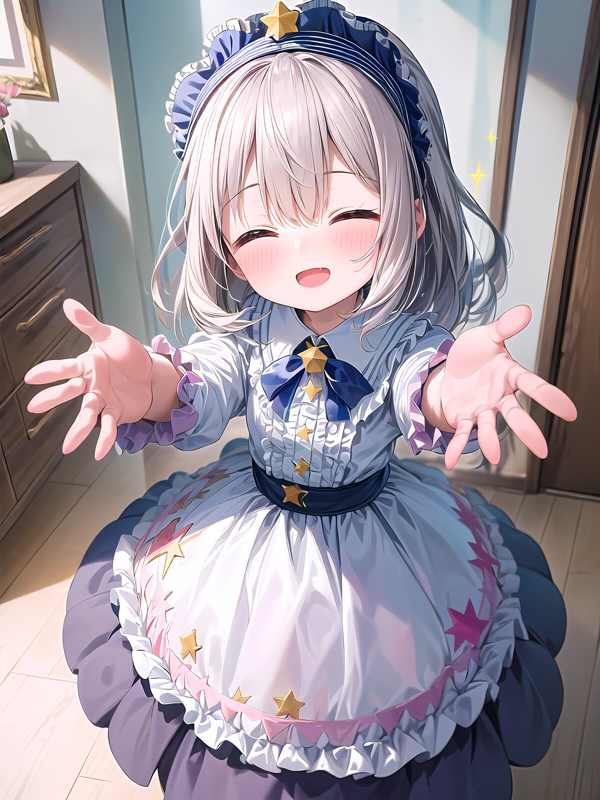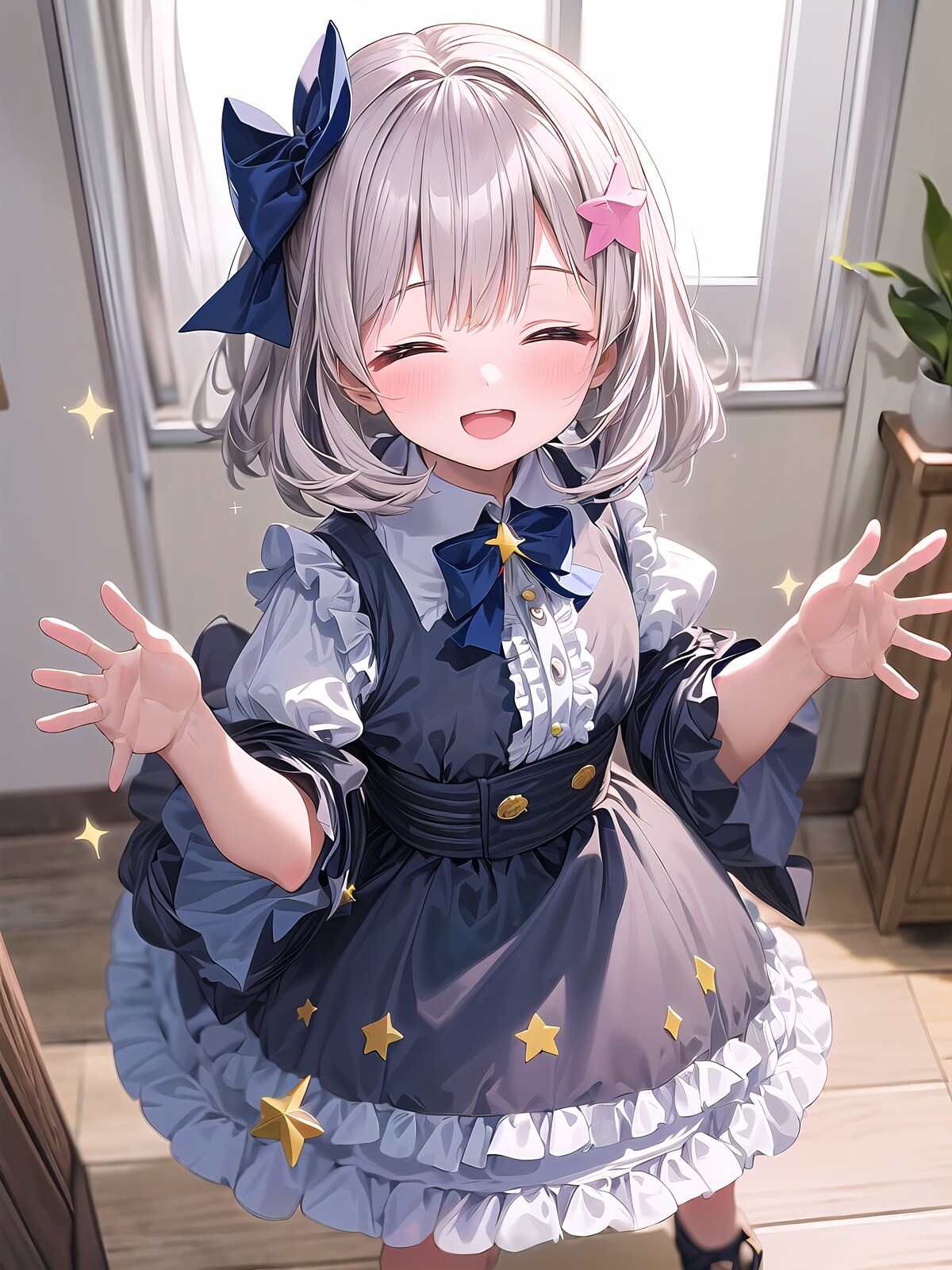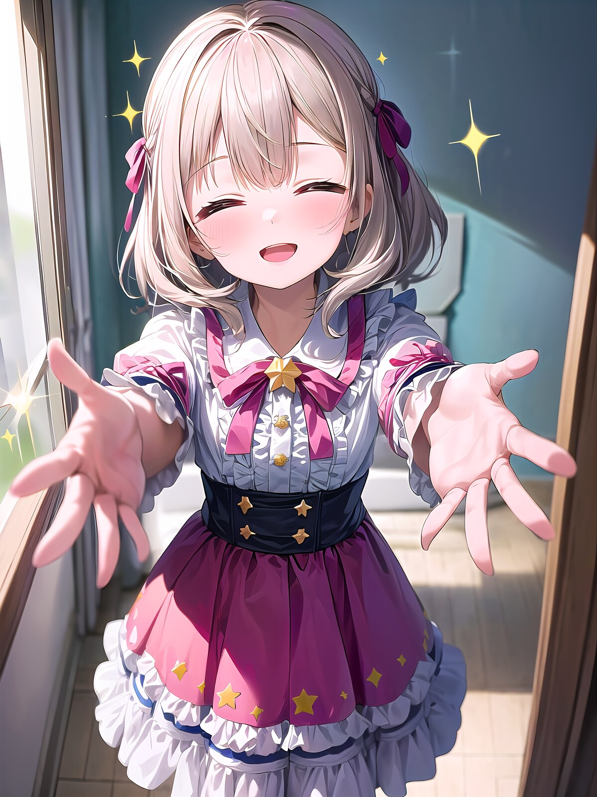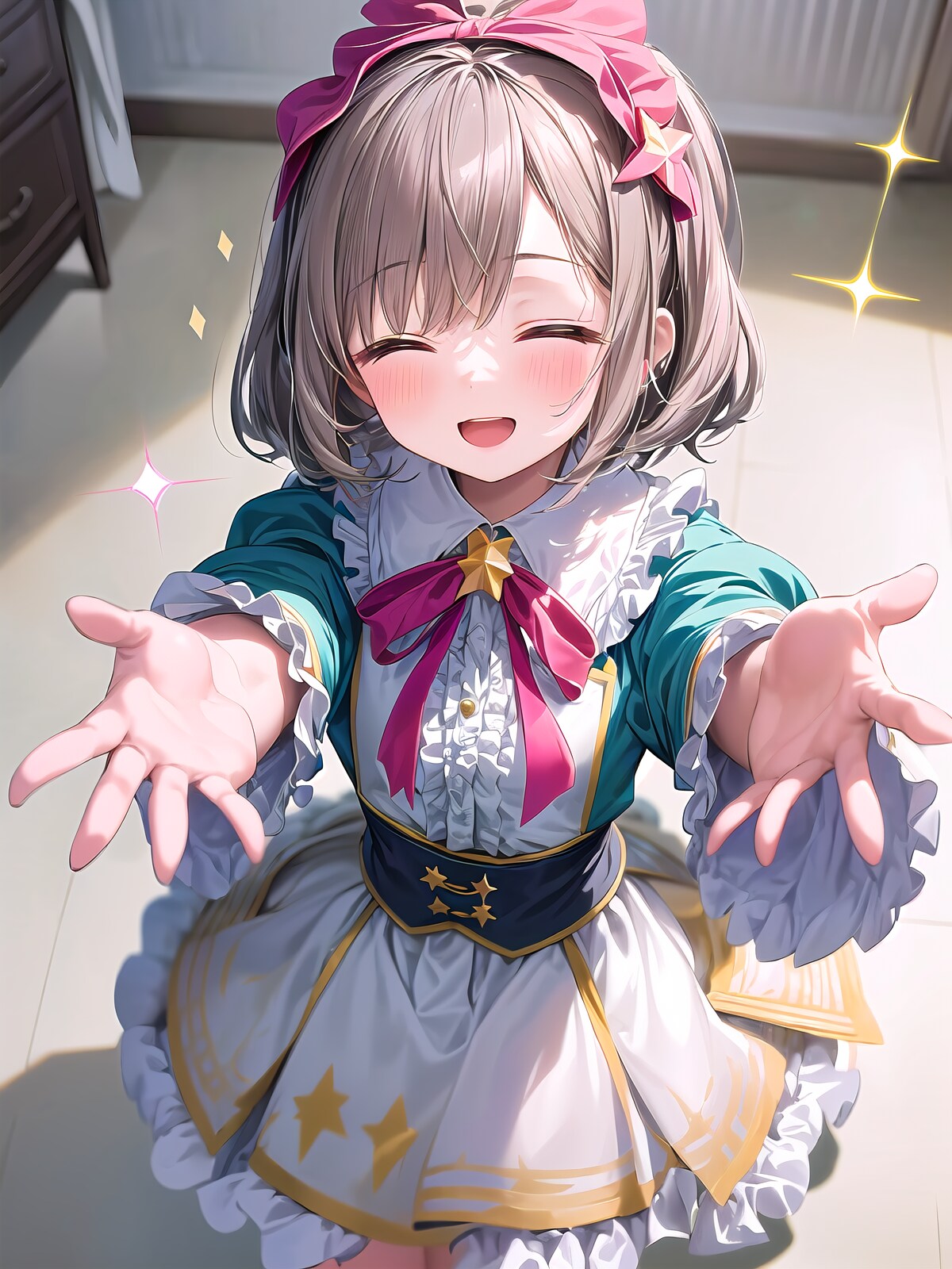 ウィンク星はwink starってワードがあるけど効きが弱いので自然文章で指定、その影響で服に星装飾が入っちゃうけど許容しました。