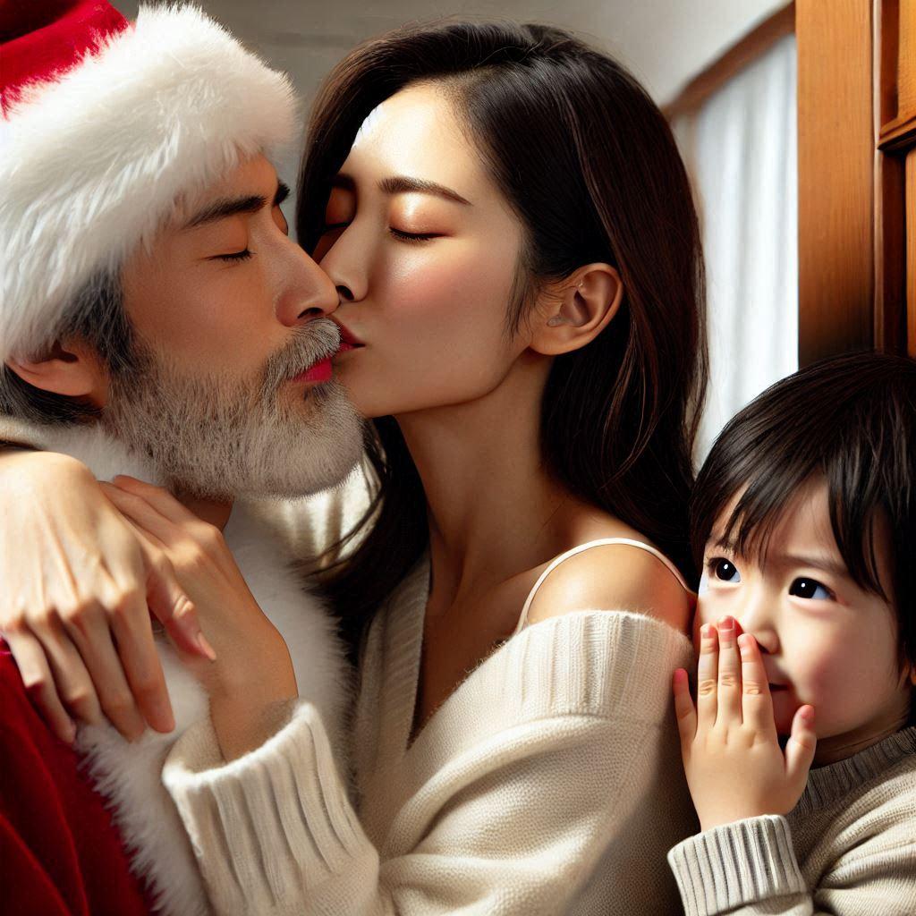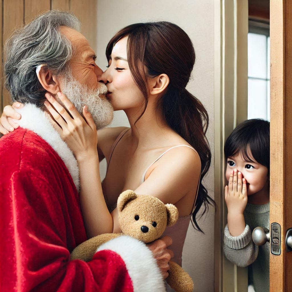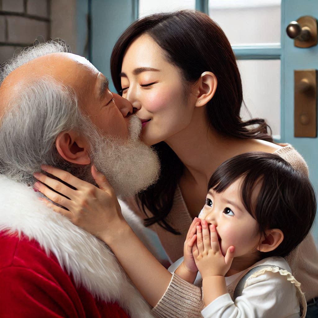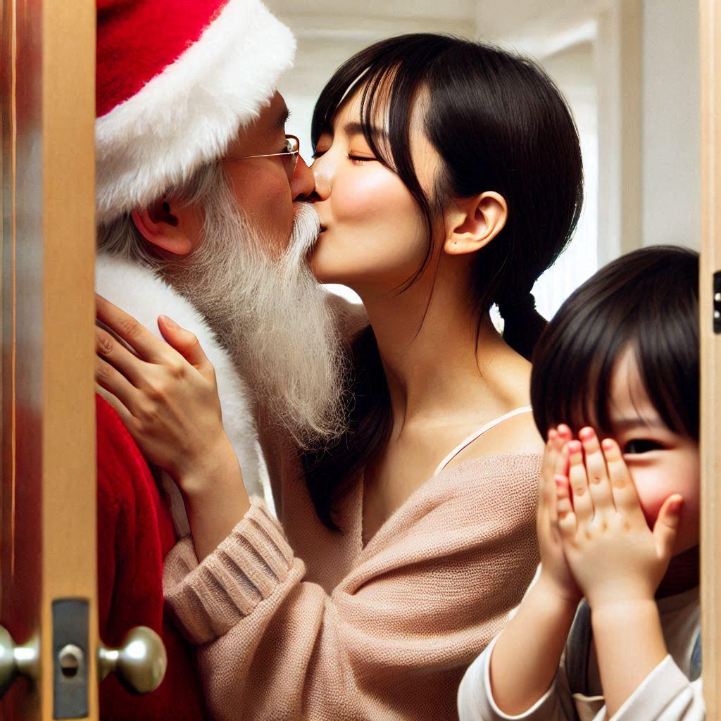 ママがサンタにキッスした!