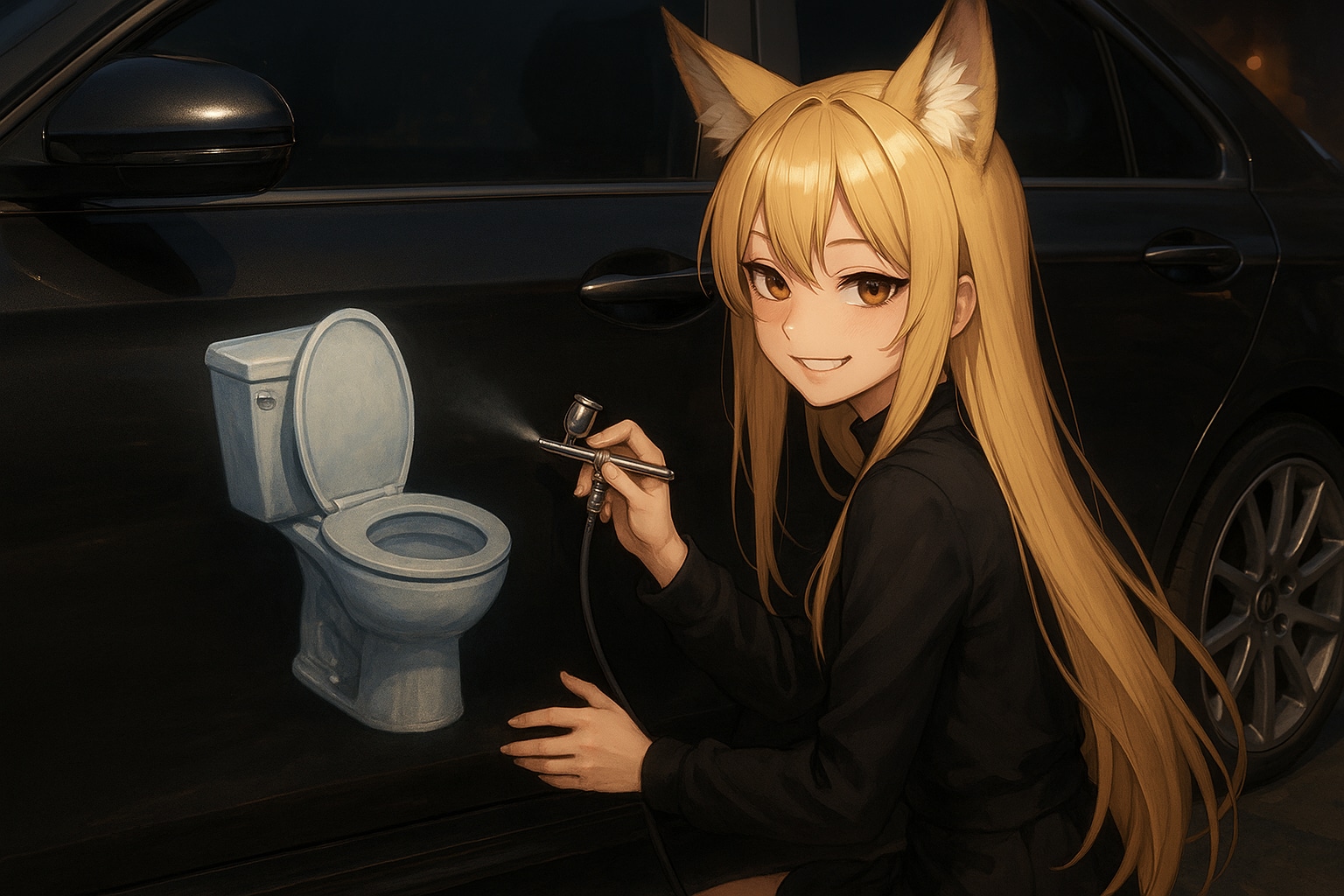 最初よそ様の外車に落書きとしたらNGだったんで自分の車としてますがもちろん他人の車に描いてます