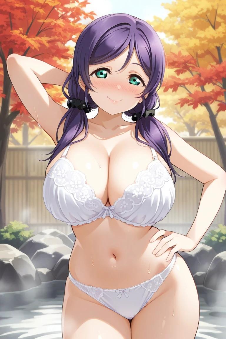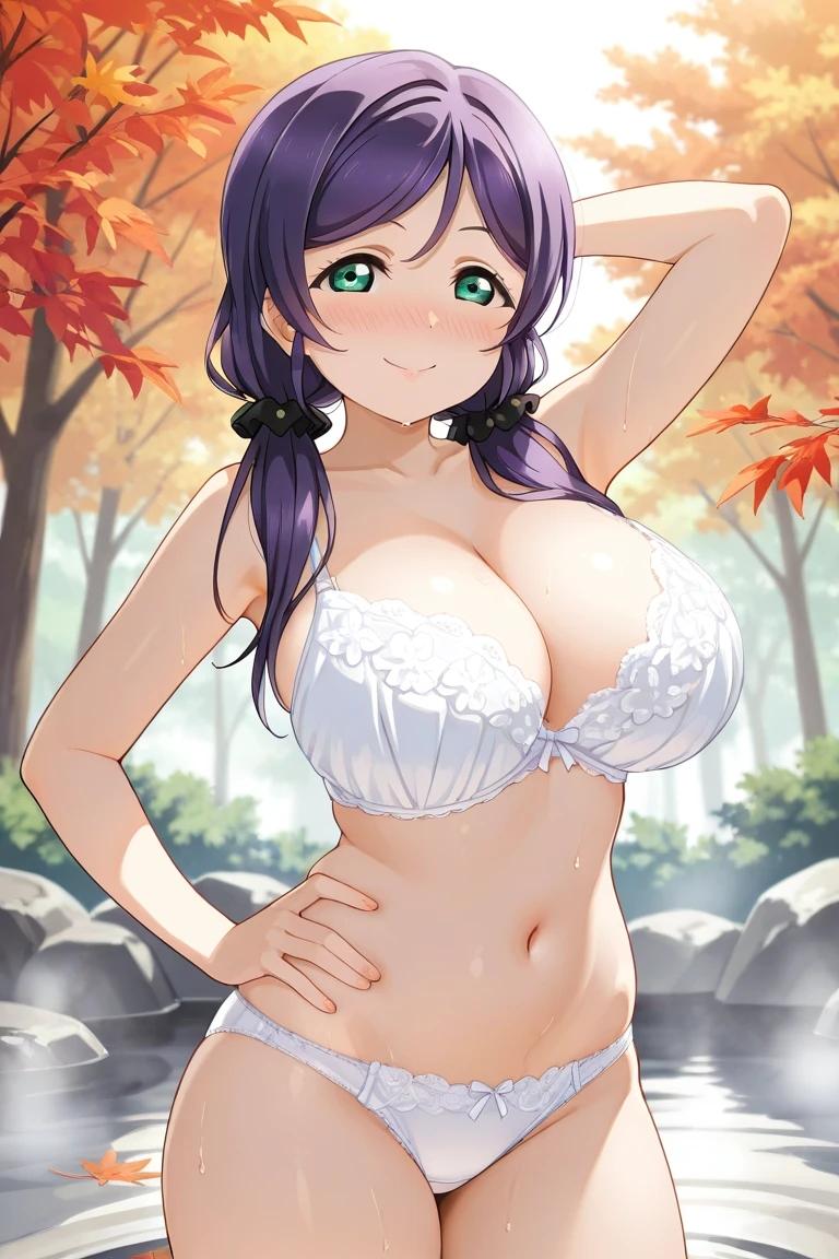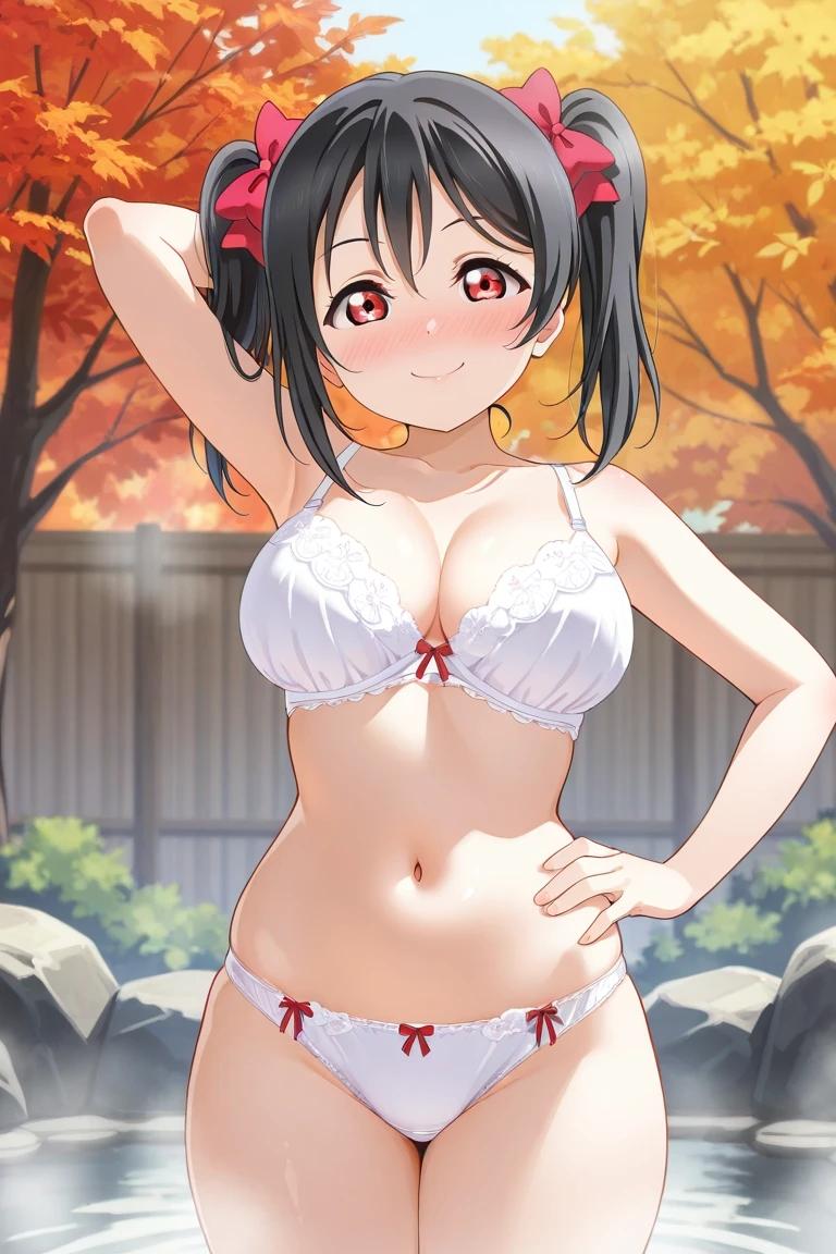 μ'sのメンバー(3年生)が温泉で下着姿になったイラストを生成しました。