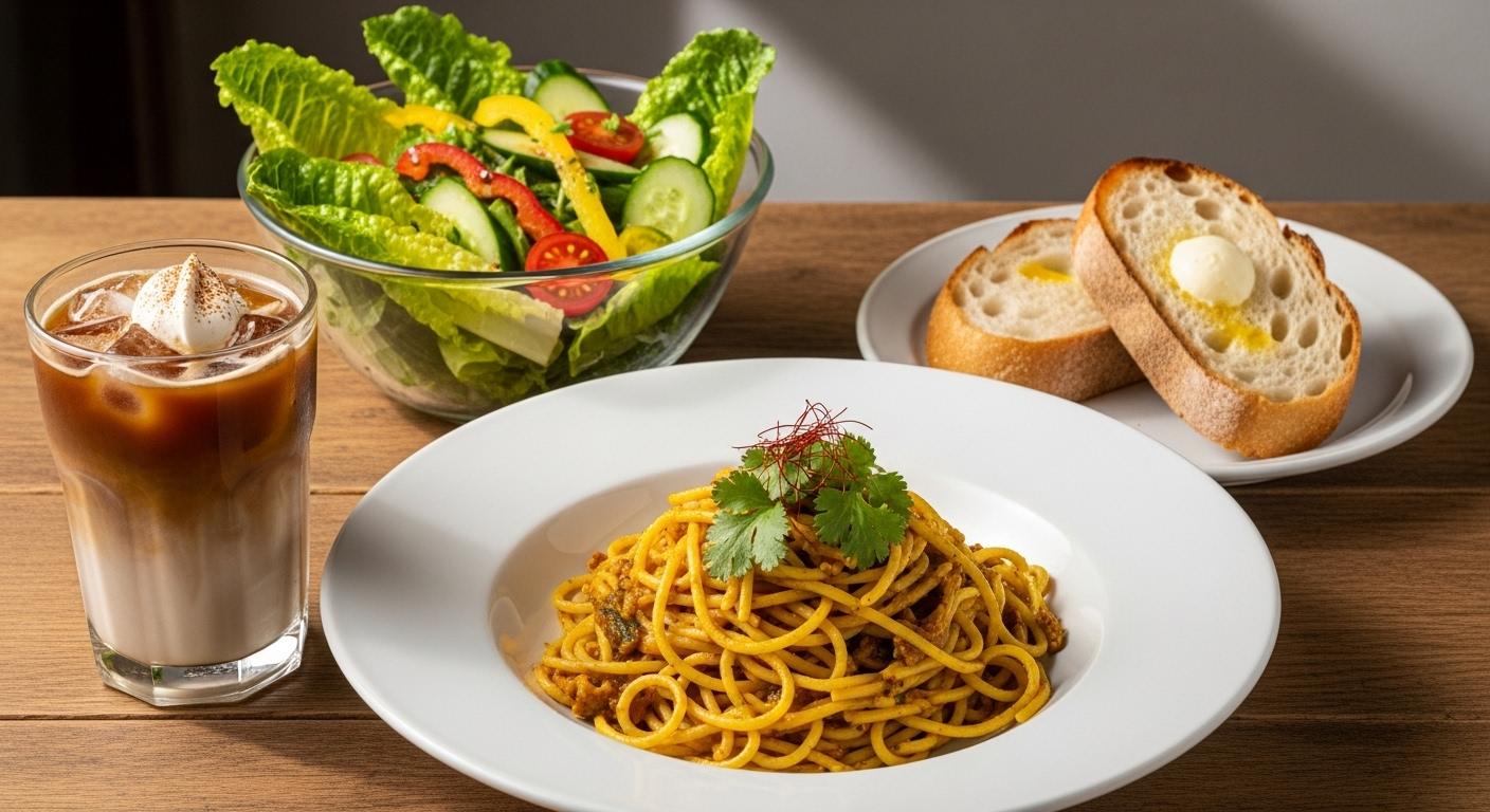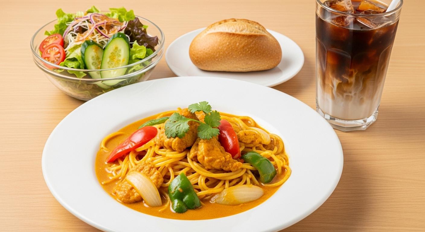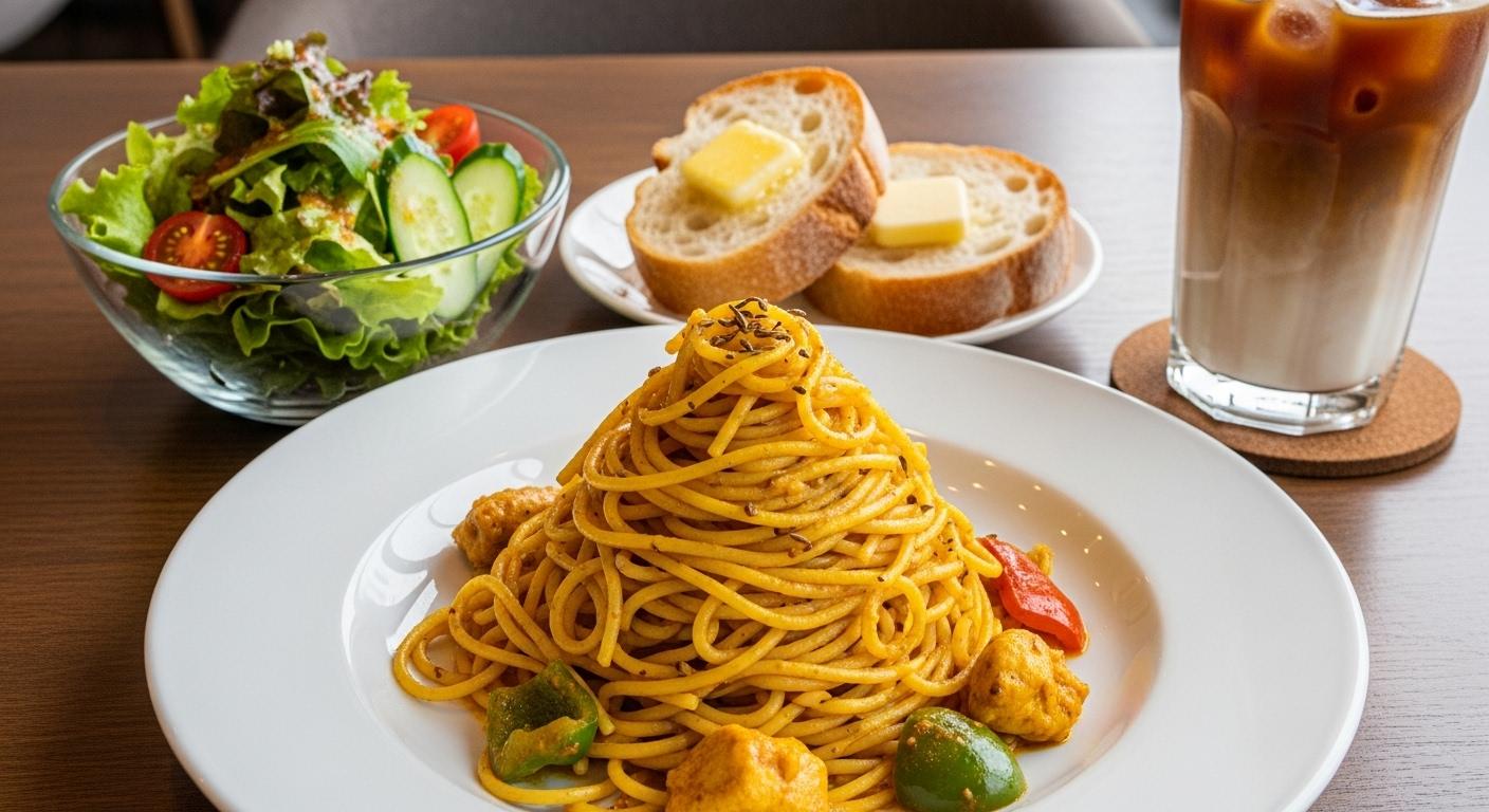 摩訶不思議食堂のカレーパスタセット