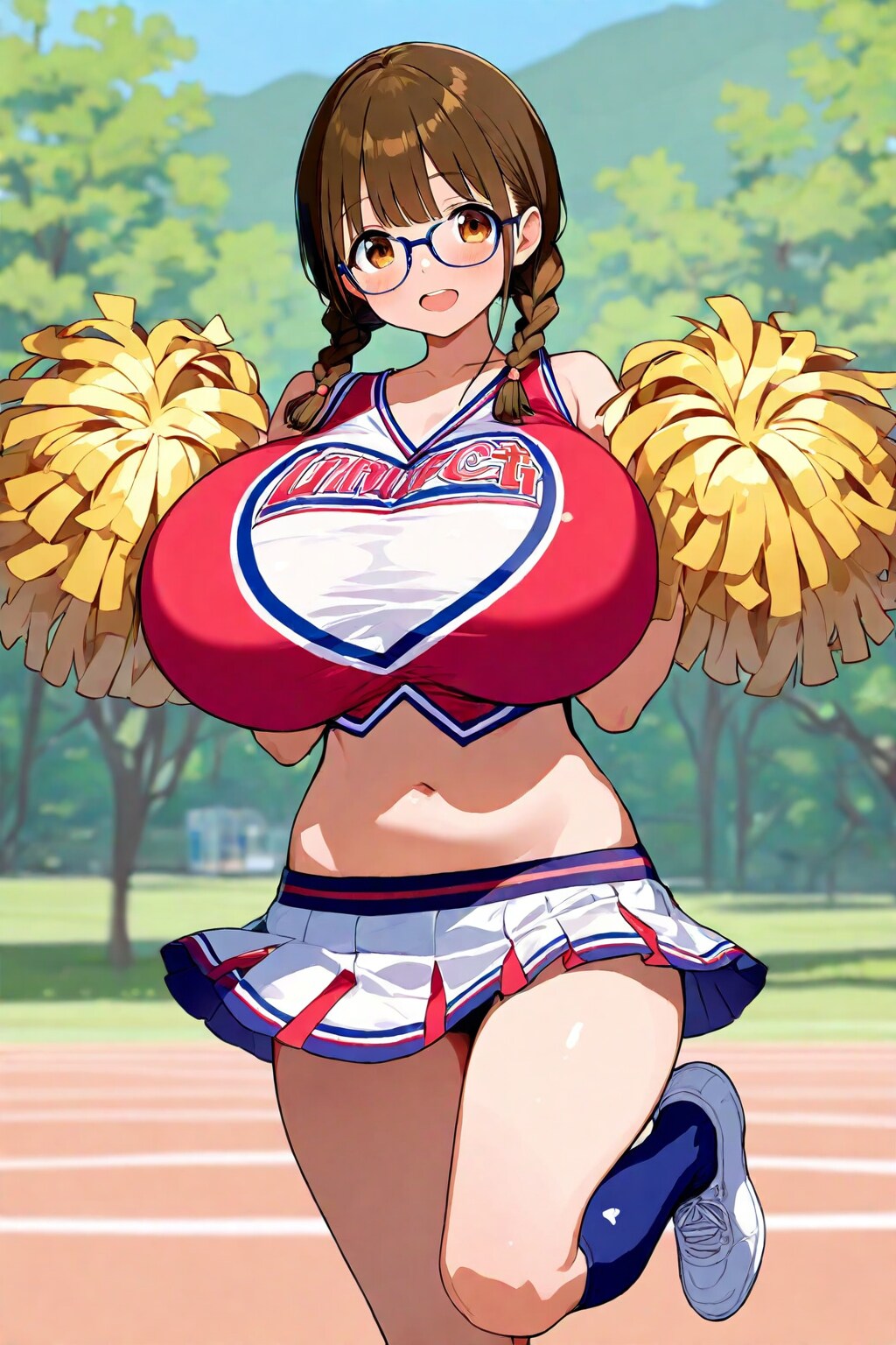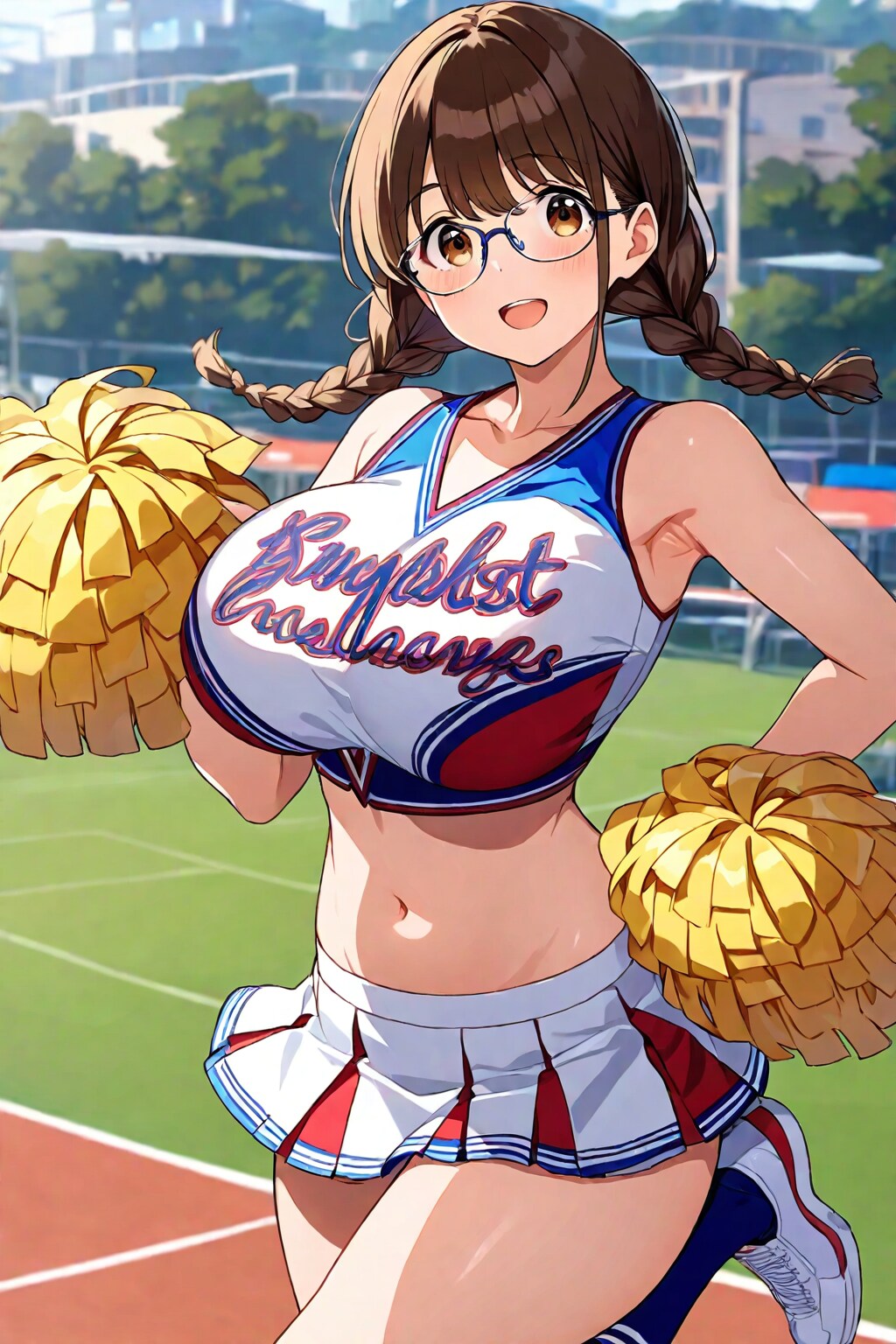 巨乳チアリーダーっ娘だけあってPRISMとの相性もいい感じですが本来の彼女のバストサイズのプロンプトである「gigantic breasts」が今回はかなりの悪さをしていまして、と言っても生成不良ではなくて全年齢では投稿できそうもないような爆乳になってしまいまして(汗)。まず大きすぎてバランスが悪いというのもあるんですが胸が7割以上飛び出しちゃってたりチアリーダーの衣装が露出狂御用達の布切れになったり胸の先っぽが飛び出してたり嬉しいけど投稿するならR-18までもってかないと無理レベルの画像が多く生成されたためプロンプト上少しナーフしました。それでも十分でかいですが(苦笑)。