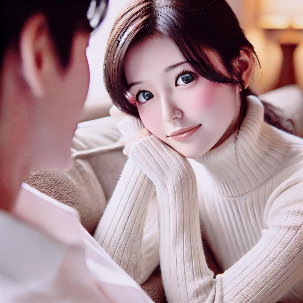 タートルネックでポディラインを強調させ誘ってくる彼女のイメージです