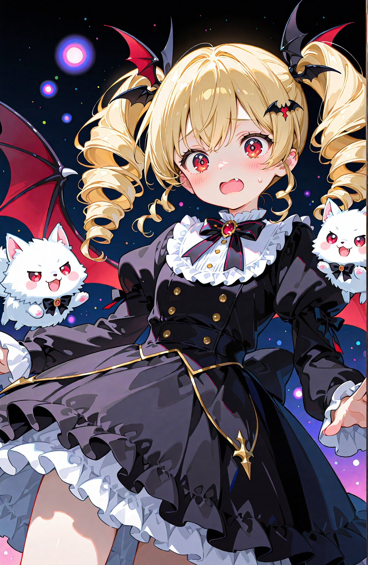 ・1枚目だけ、服装の vampire dress を maid dress に変えています。細かなこだわりとしては驚いて口を開けているので fang で牙が見えています。