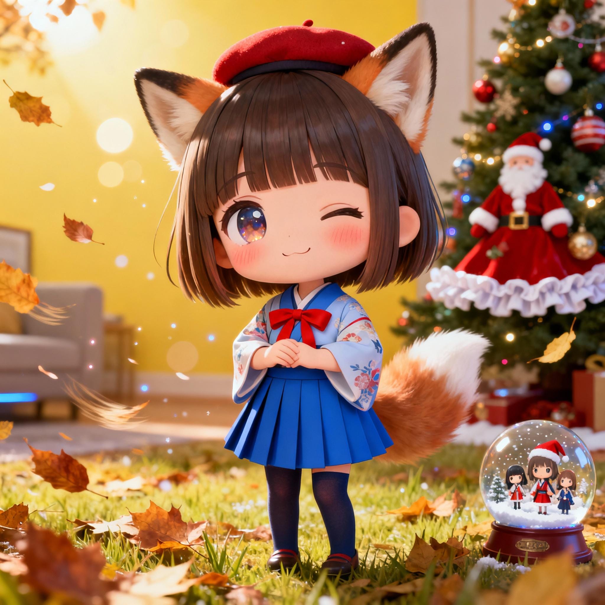 1,スノードームに雪だるま、2,ツリーにサンタの飾り、『正方形生成』。