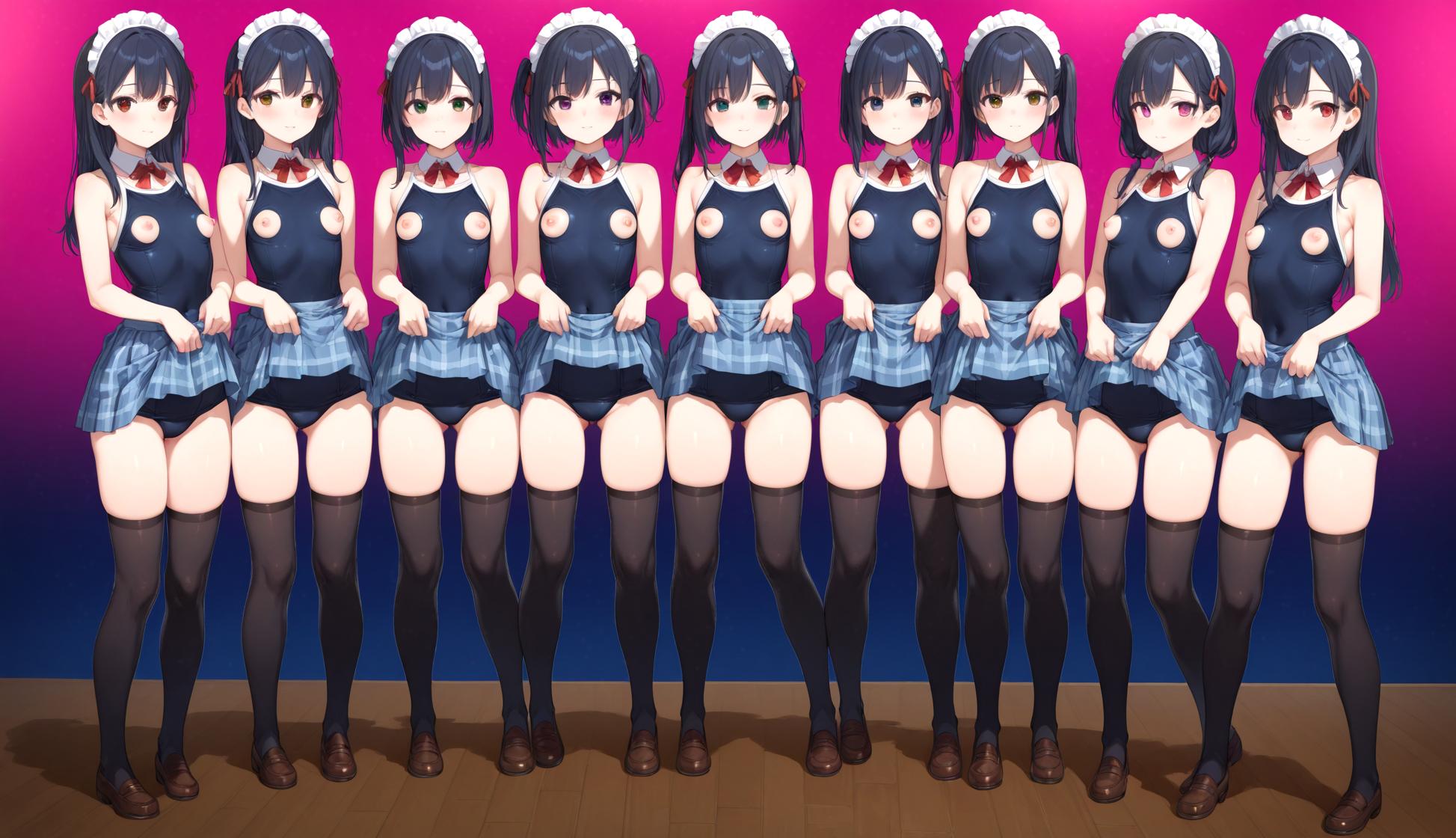 黒髪スク水デーのオナホメイドたちたくし上げでご挨拶