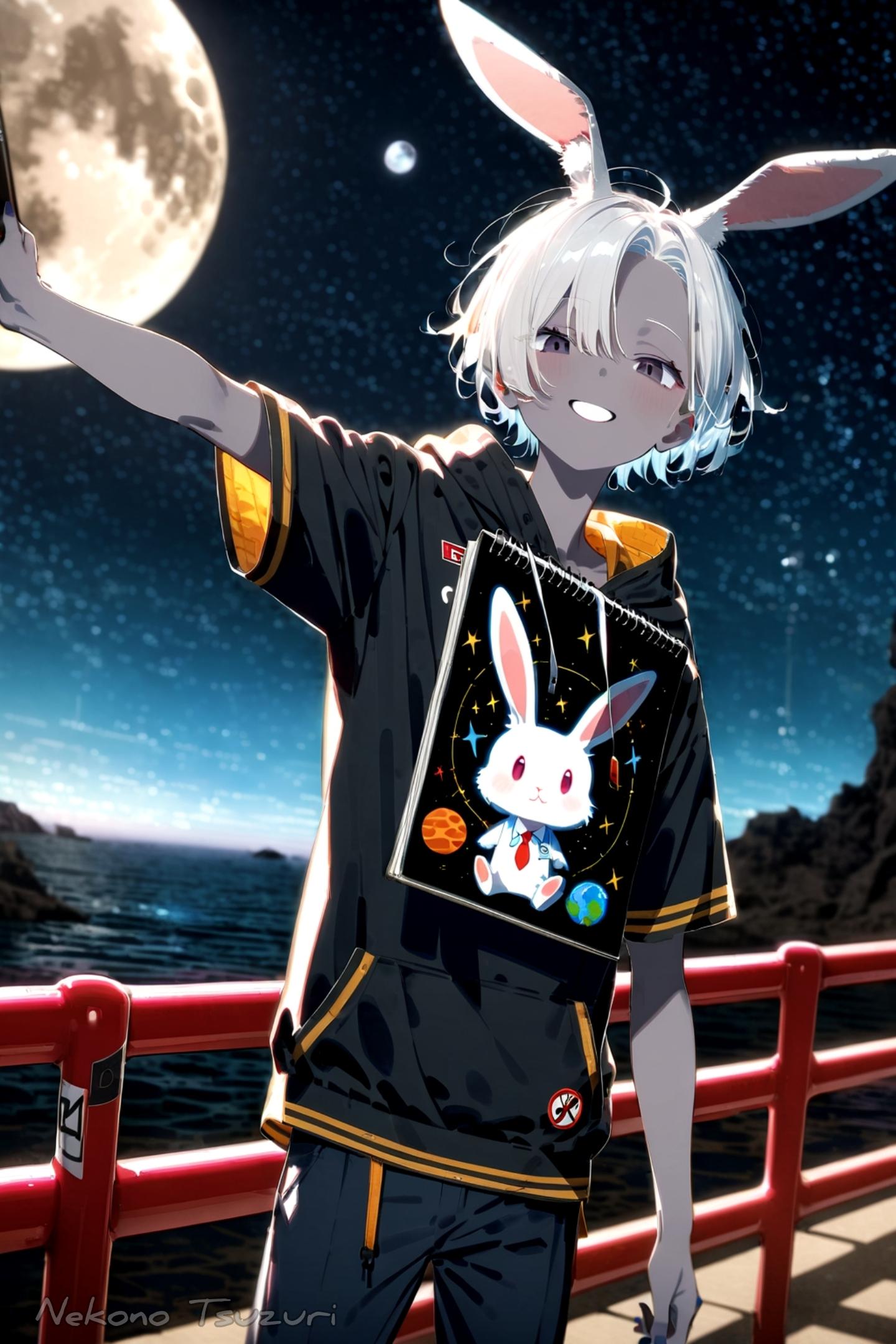 若い男性を月へと連れていき、兎耳宇宙人は彼の体を乗っ取って地球を目指して旅をする。