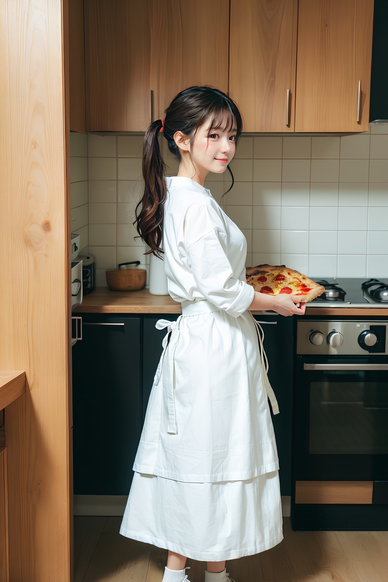 こはるに割烹着と三角巾でピザを作らせてみたかったのですが全然出てくれませんでした。