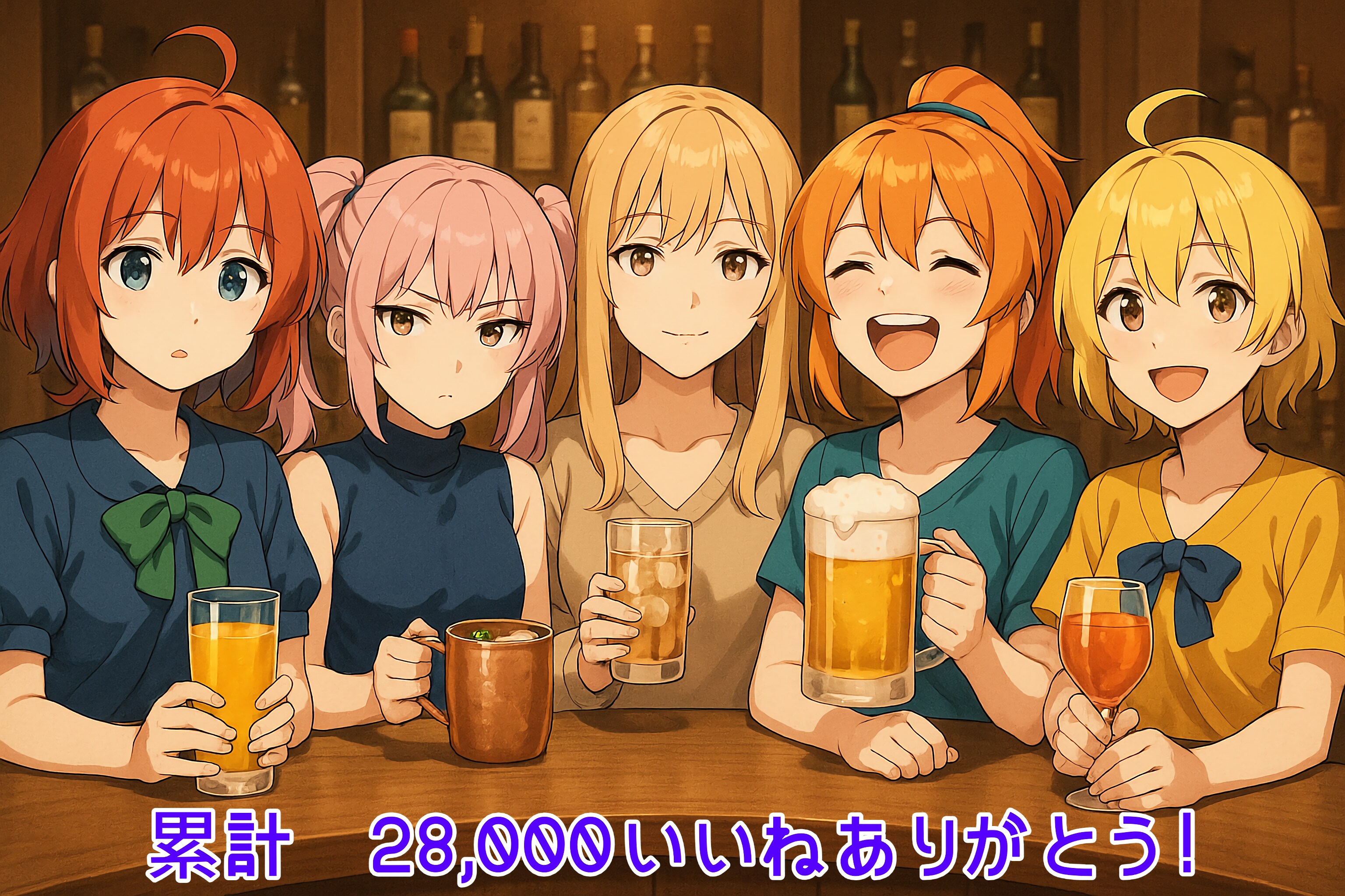 上記の投稿でも記載はしていますがFour seasonsは少し若めを想定していたのですが、ナツミの妹のナツキを大学4年生で年齢が1つ下と言う設定にしてしまったため、メンバー全員の年齢を再編・・カエデちゃん以外は成人を超えているので、メンバー仲良くバー飲みでのひと時になります。