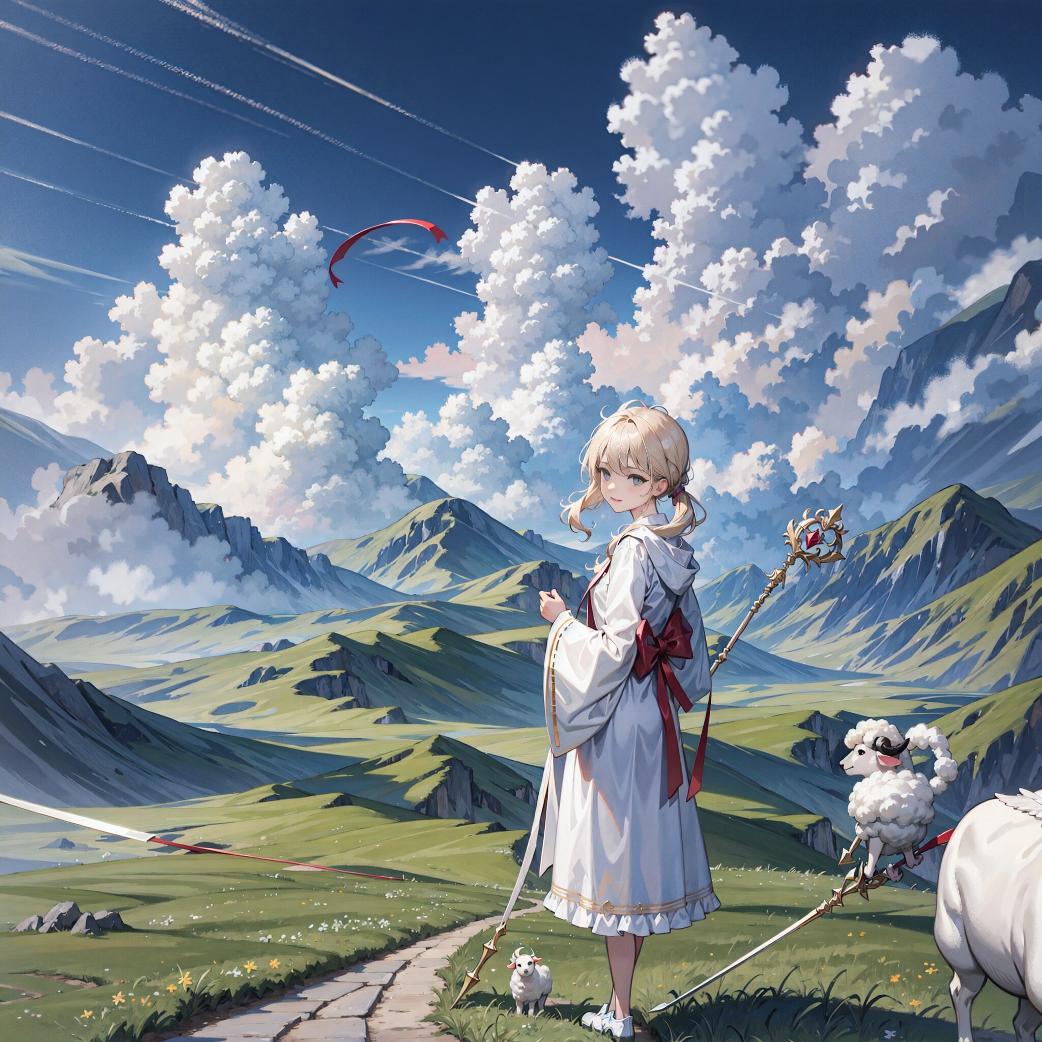 肥沃な土地には彼女と羊達がただ涼しげな風を受けているだけだ。