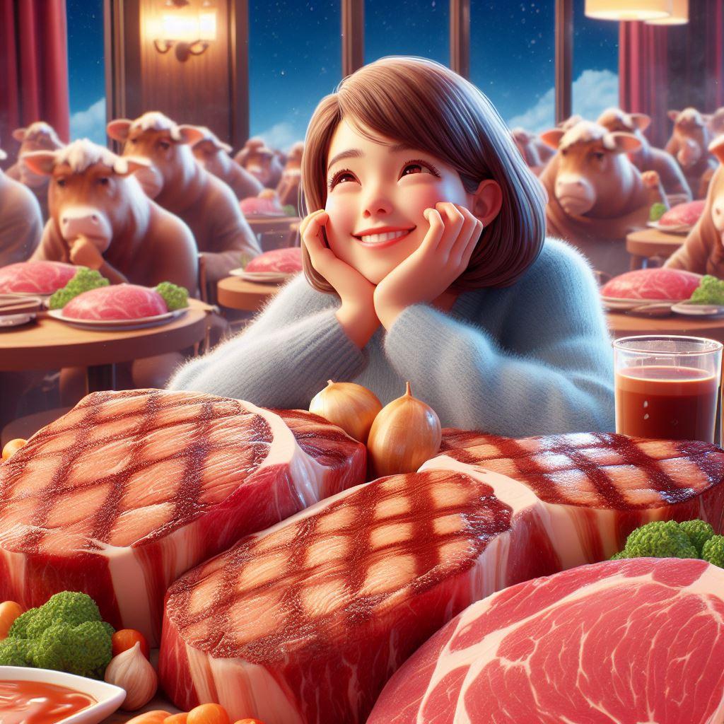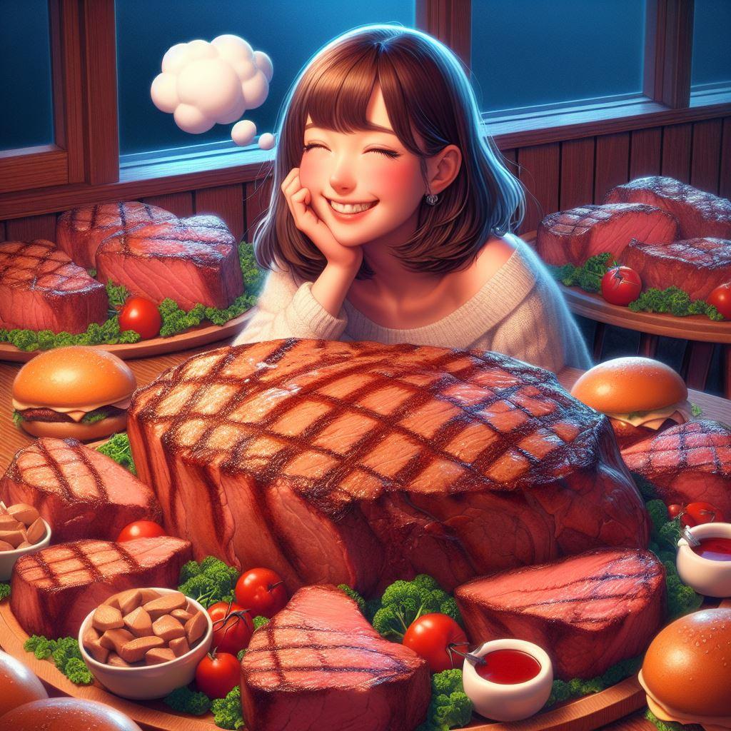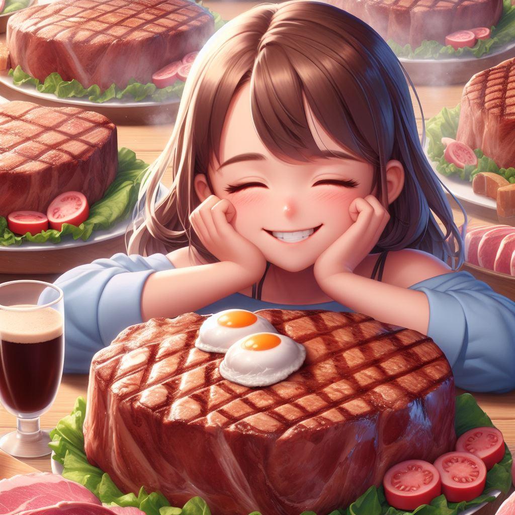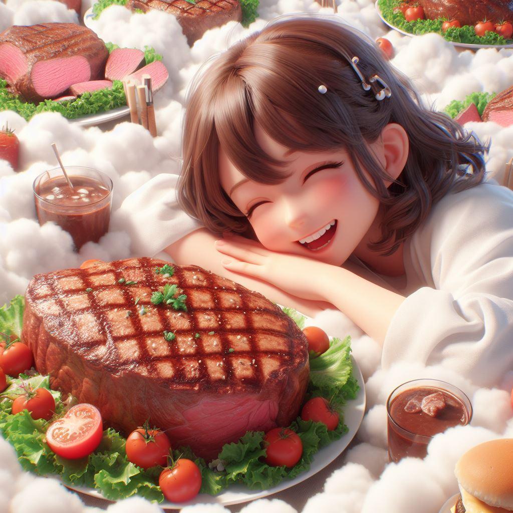 沢山のステーキに囲まれて思う存分に食べる、あ~肉食いて~w