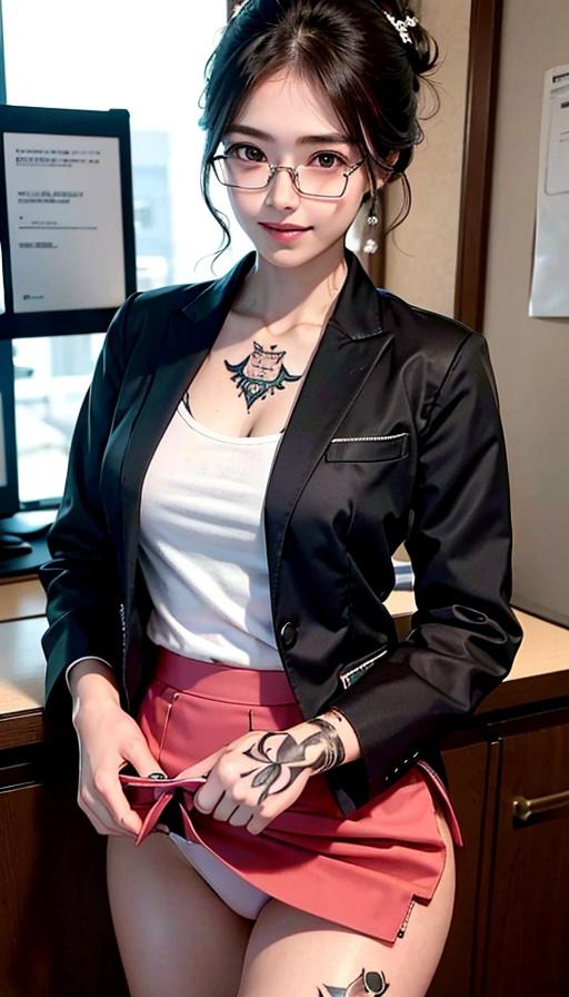 jacket partially removed, heart in eye, burnt clothes, holding fishing rod, kanji, doujin cover, pentagram, tape gag, adjusting headwear, red socks, friends, cloud print, coke-bottle glasses, oral invitation, competition school swimsuit, barbell piercing, gradient legwear, prisoner, blood on breasts, wind chime, carrying over shoulder, tape measure, flaming weapon