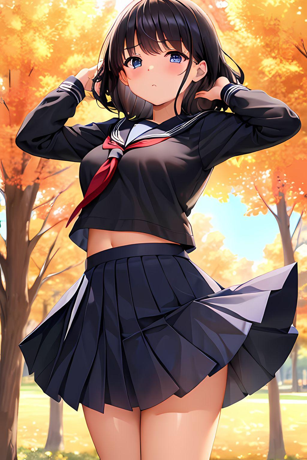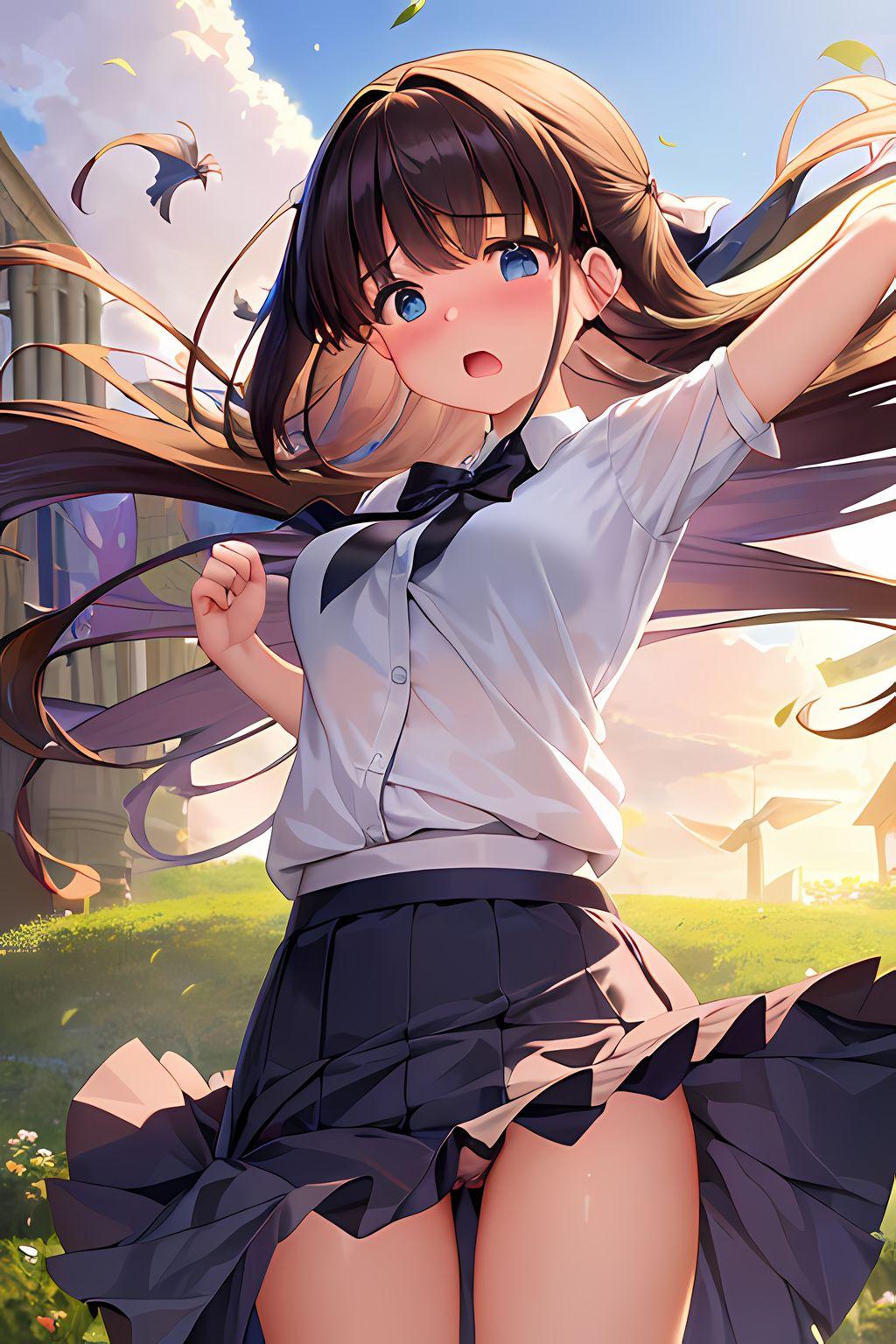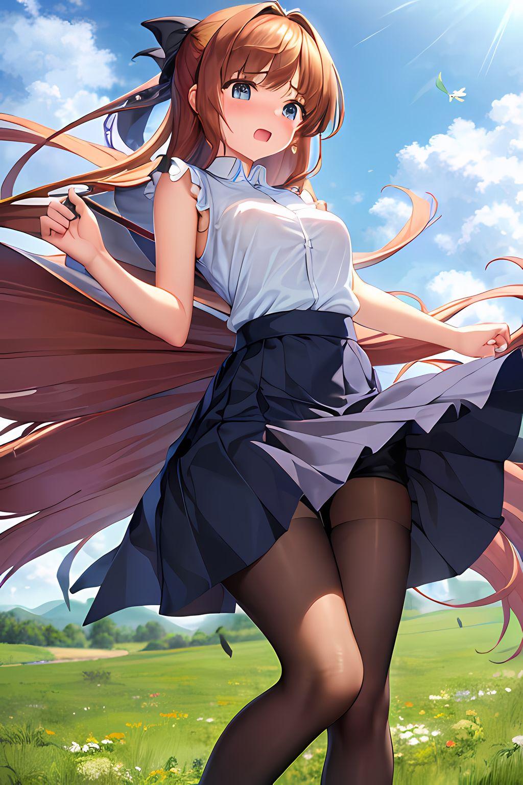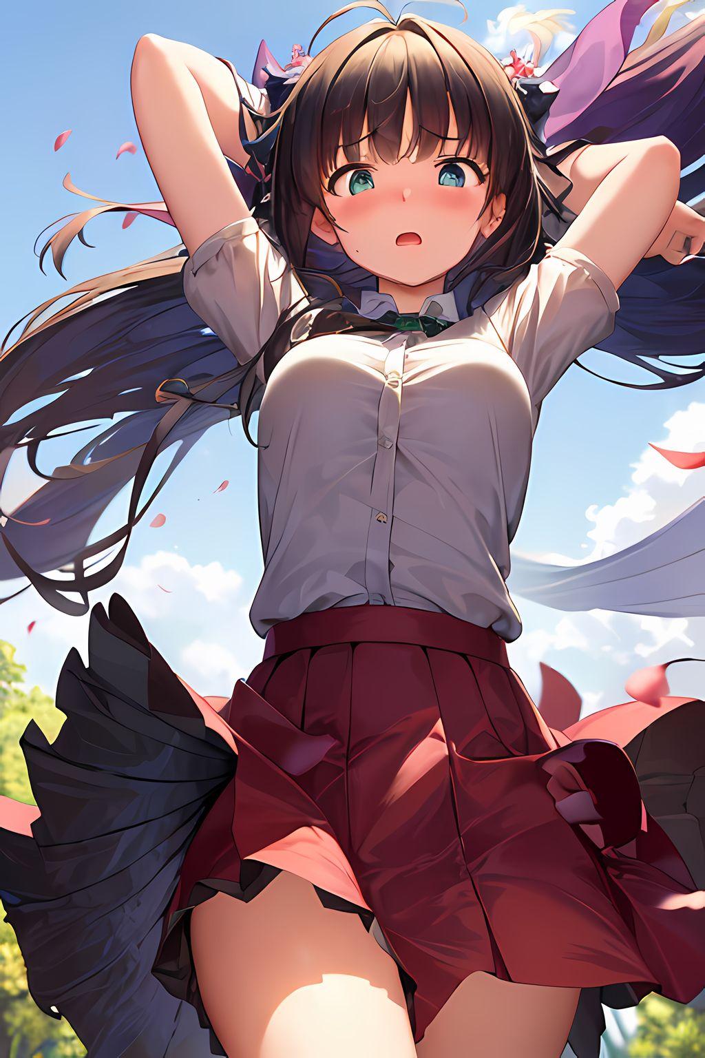 女の子はいつもの黒髪ポニーの茶瞳っ娘(お目々奇麗Ver)