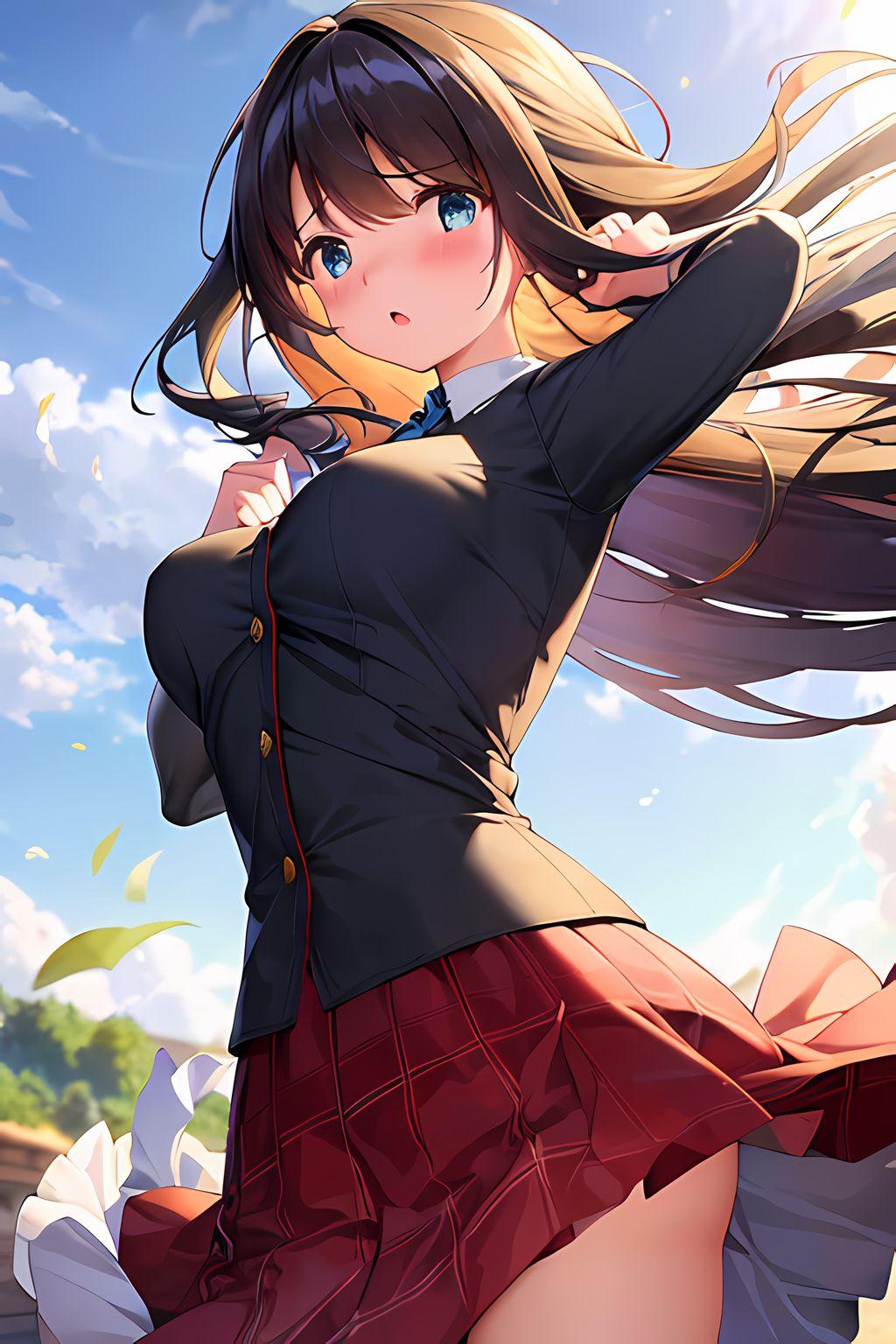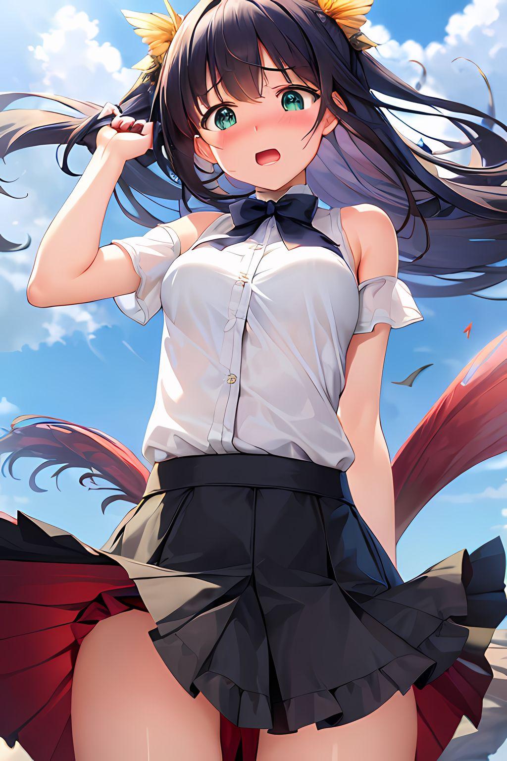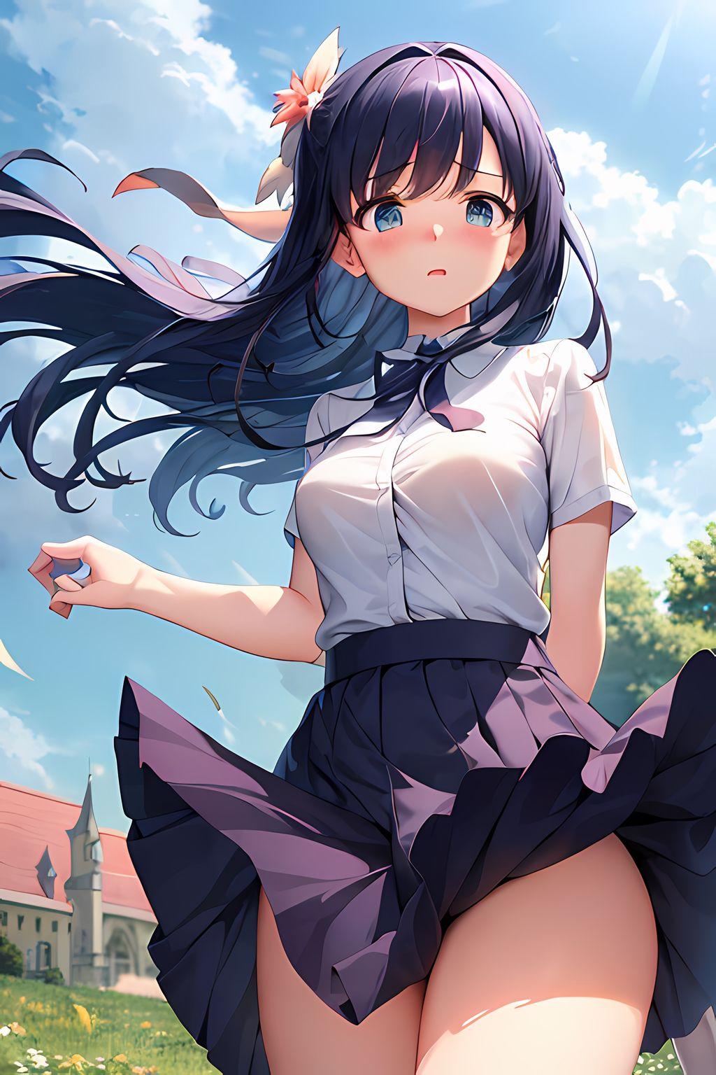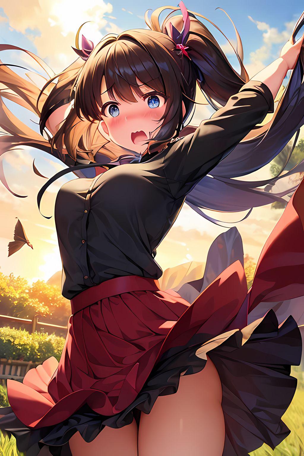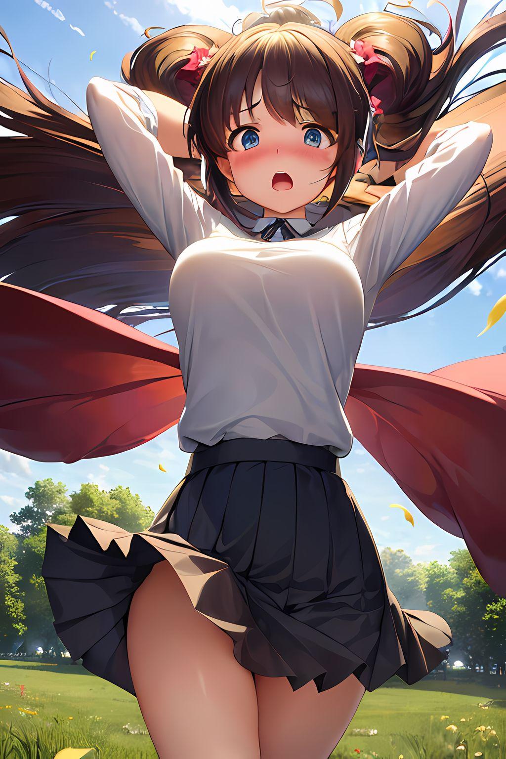 女の子はいつもの黒髪ポニーの茶瞳っ娘(お目々奇麗Ver)