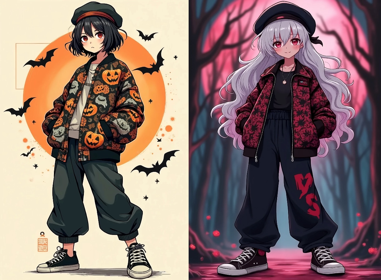 ukiyoe Halloween pattern Flight Jacket,Wide pants,beret,sneaker,
