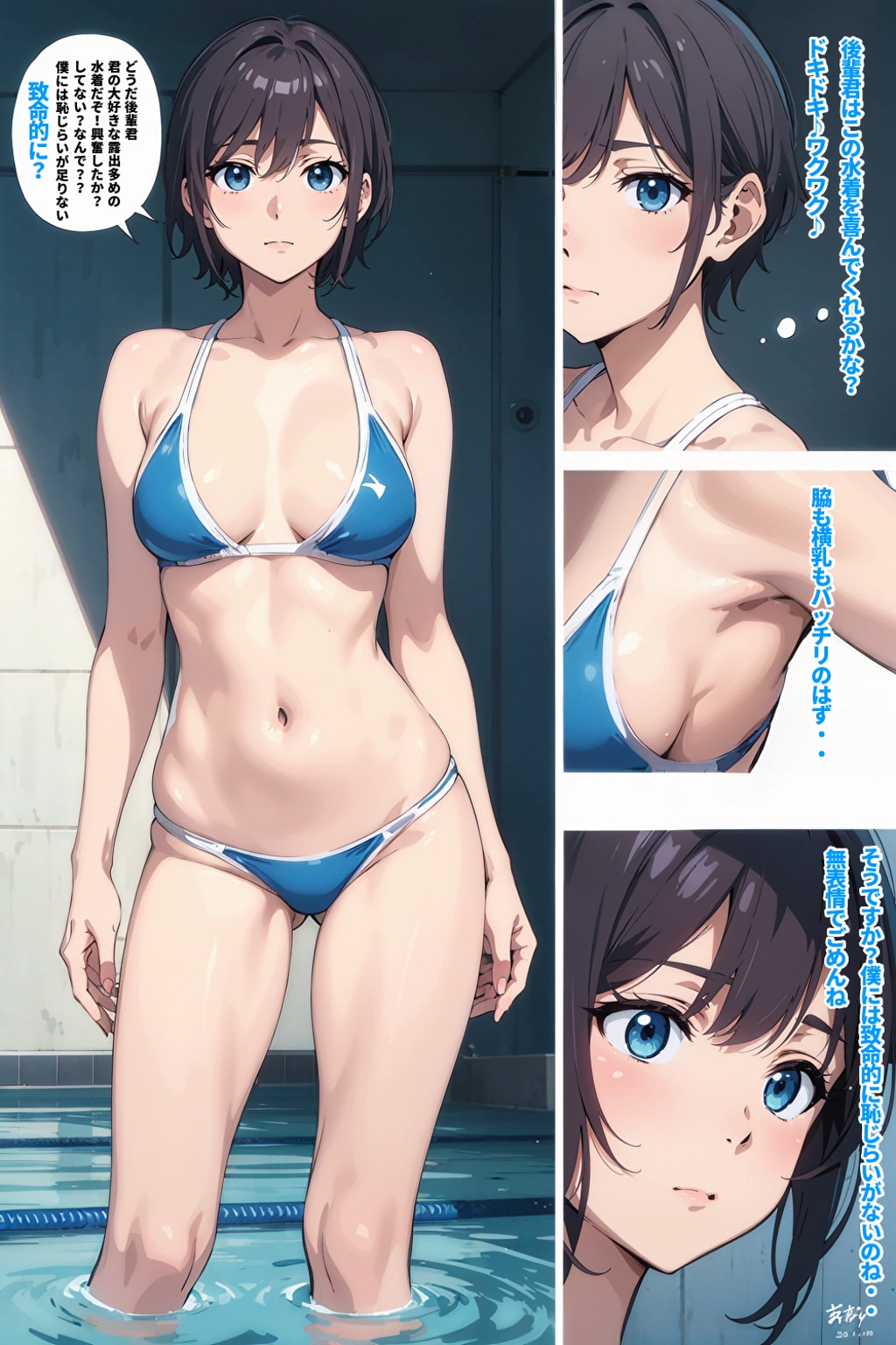 偶々、町内会のくじ引きで当たった”プール貸し切り券”で2人だけのプールを満喫するはずだった先輩ちゃんと後輩君・・・しかし、後輩君の期待とは裏腹に、無表情で知られる先輩ちゃんはプールでも無表情・・・肌面積多めなビキニをガン見してもまったく恥じらわず後輩君は彼女に一切の萌え要素を見いだせなかった・・・ついでに色気も皆無😖。