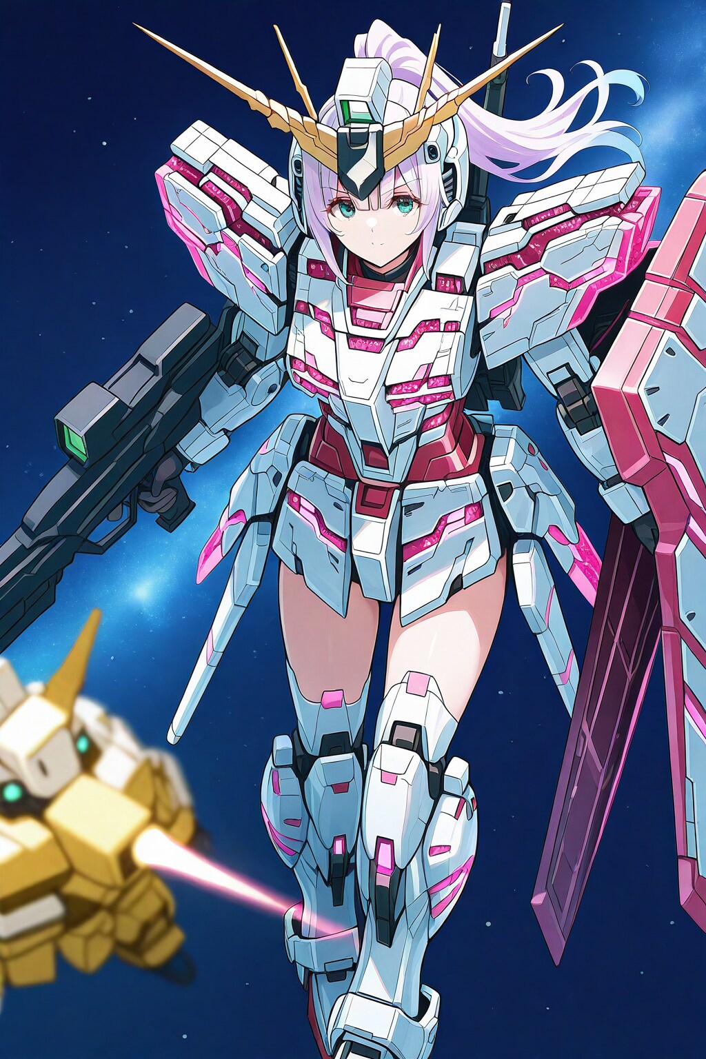 メカ娘テーマUNICORNでベタでユニコーンガンダムっぽいのを明◯美◯氏風にMS少女的なのを生成NTDモードなのでV字アンテナに🦄