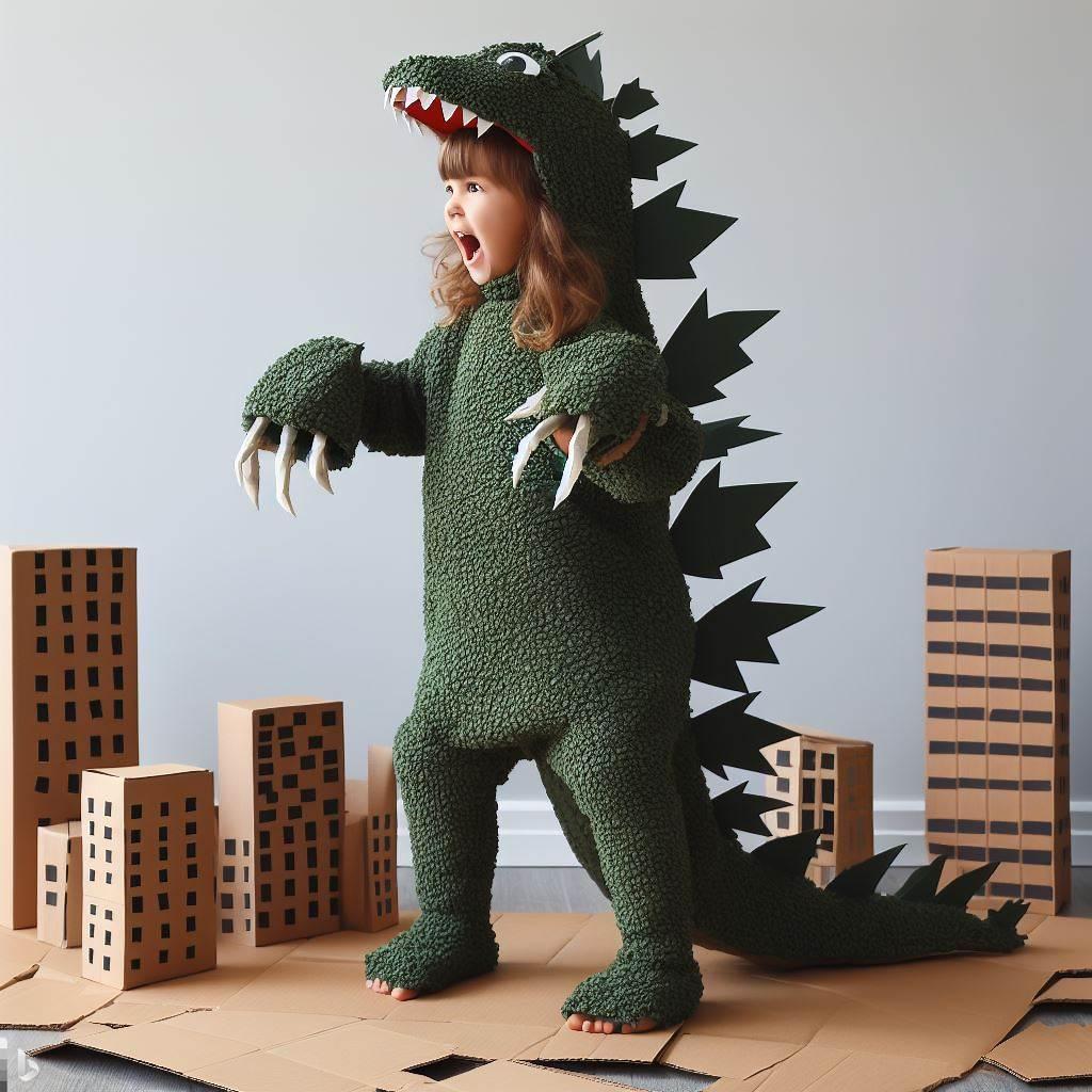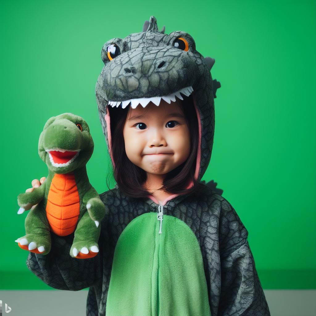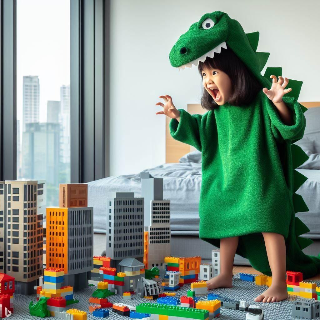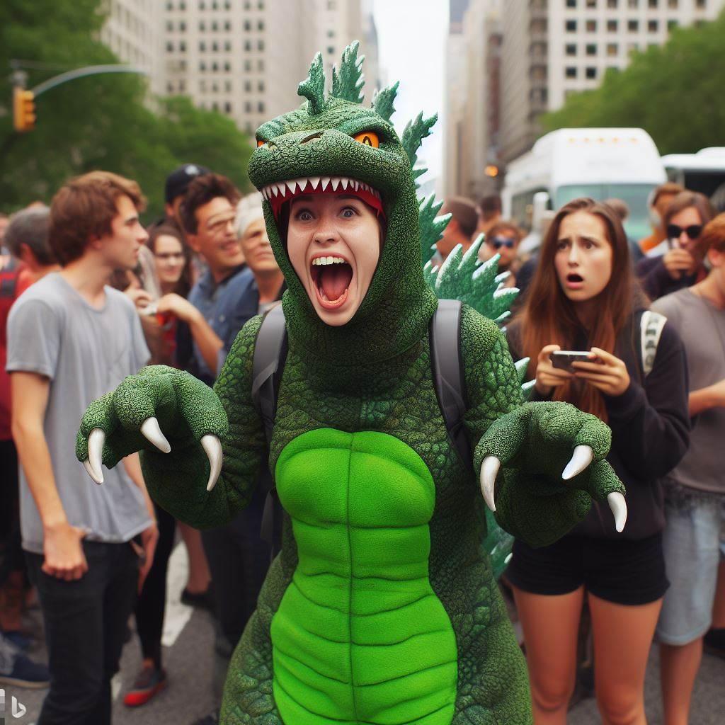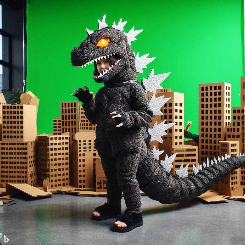 【DALL-E3】ゴジラの着ぐるみを着た女の子