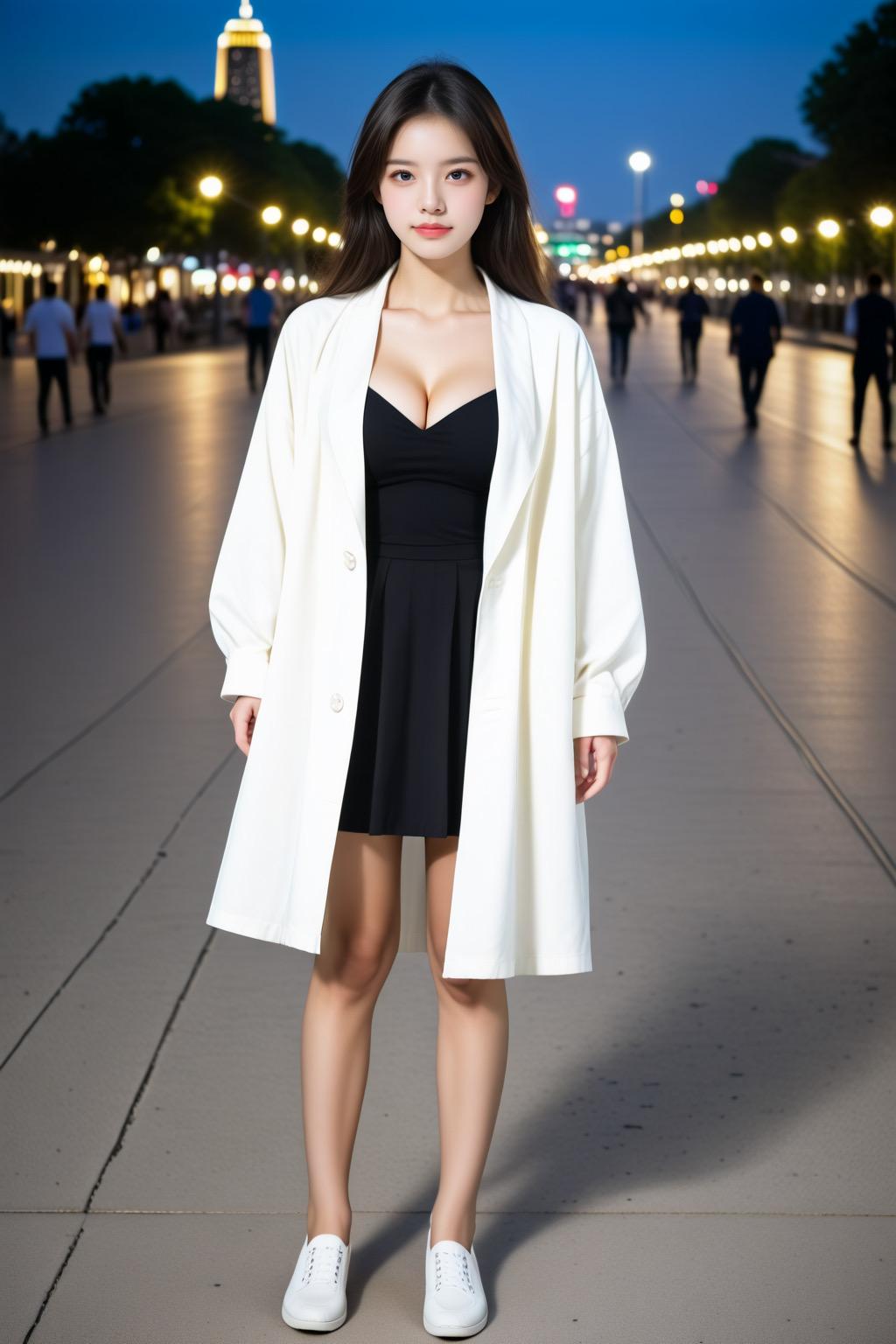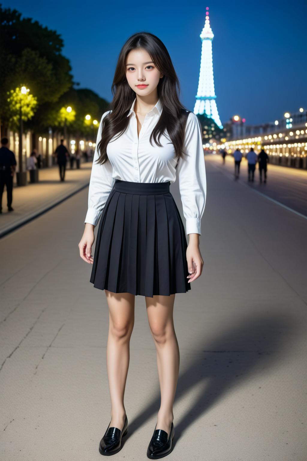 “Kobe’s Meriken Park at night, a stunning waterfront night view. The illuminated Port Tower and Ferris wheel, a couple gazing at the harbor. A romantic atmosphere, dreamy and enchanting lights.”