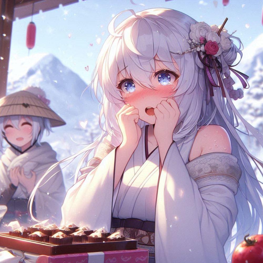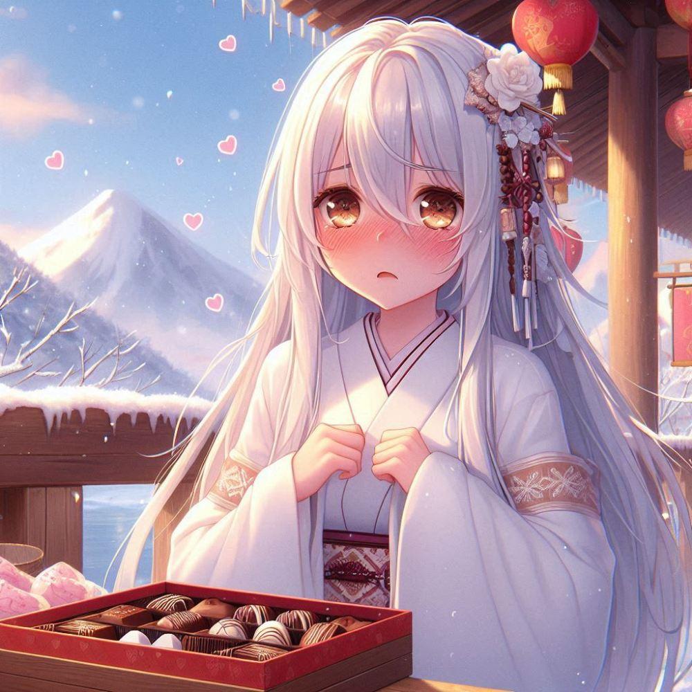 ラブコメファンタジー、バレンタインチョコ準備がバレて赤面する雪女