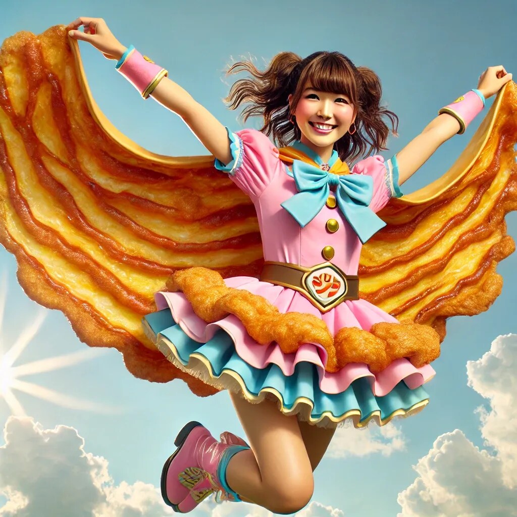 今度のクイニーアマンマンはなんと揚げ物を食べる(揚げin)ことでスーパークイニーアマンマンに変身してしまうのだ。凄いぞ、クイニーアマンマンアゲイン!