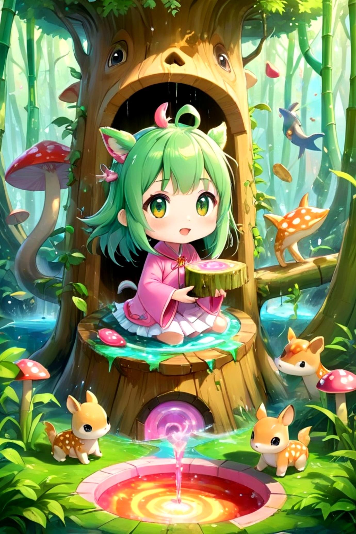 森の中の緑髪ちゃん