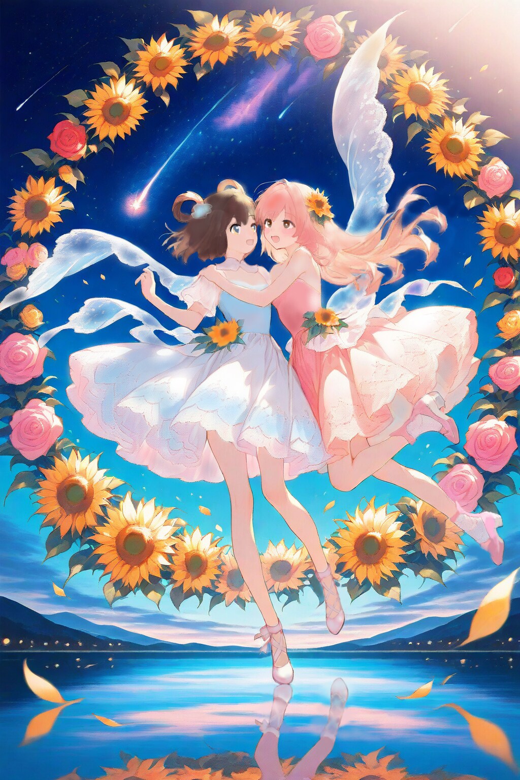 手を取りあう二つの花は、未来への夢を紡いで空に希望の輪を描いてゆく。』