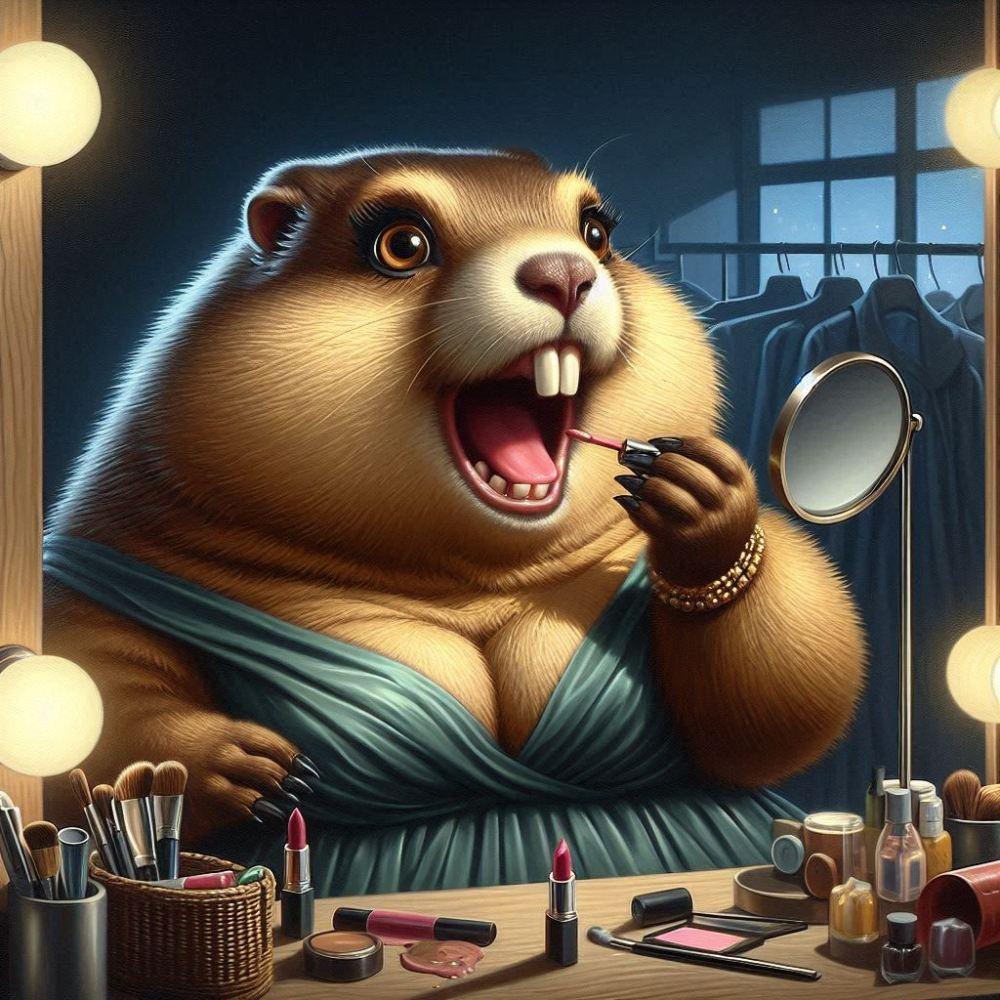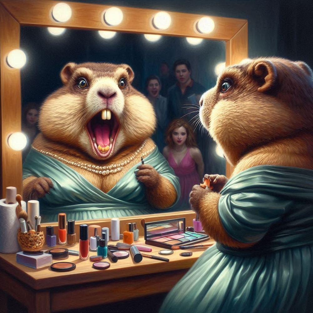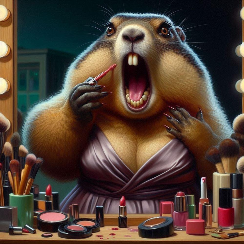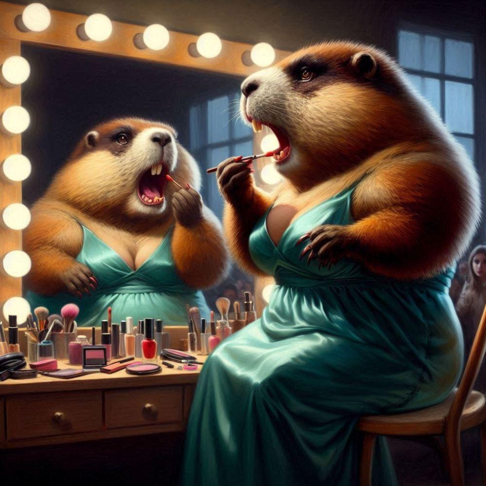 油絵風、メイクする女優マーモット