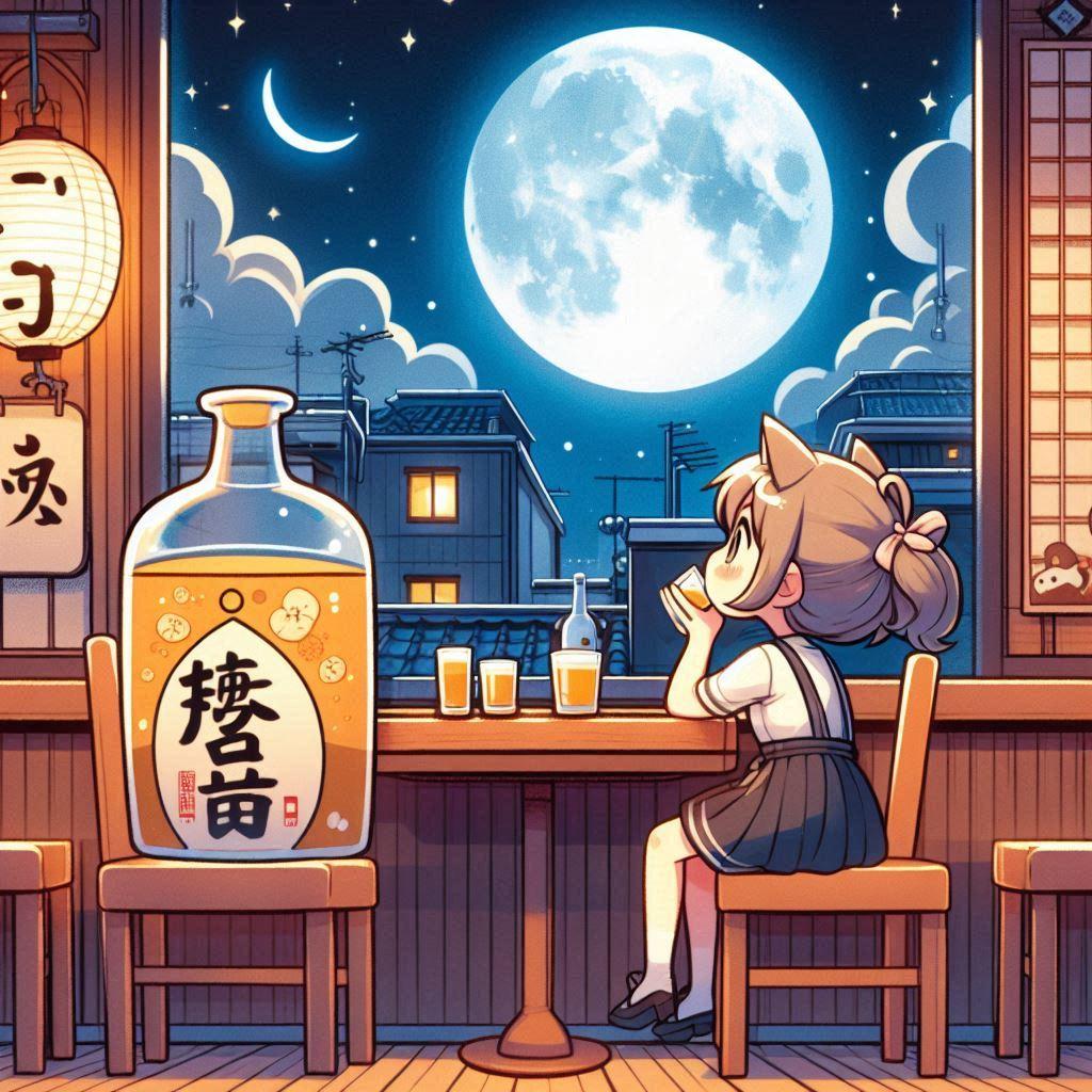 私はこう見えても実は300歳なんです。だからお月さん、お酒を飲んでるのを見ても咎めないでください