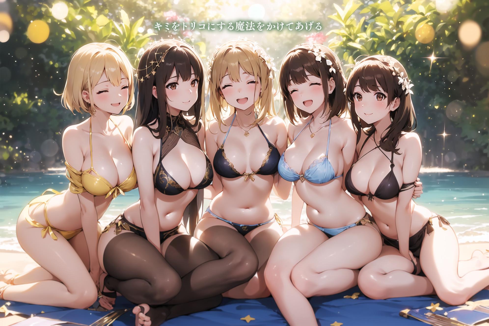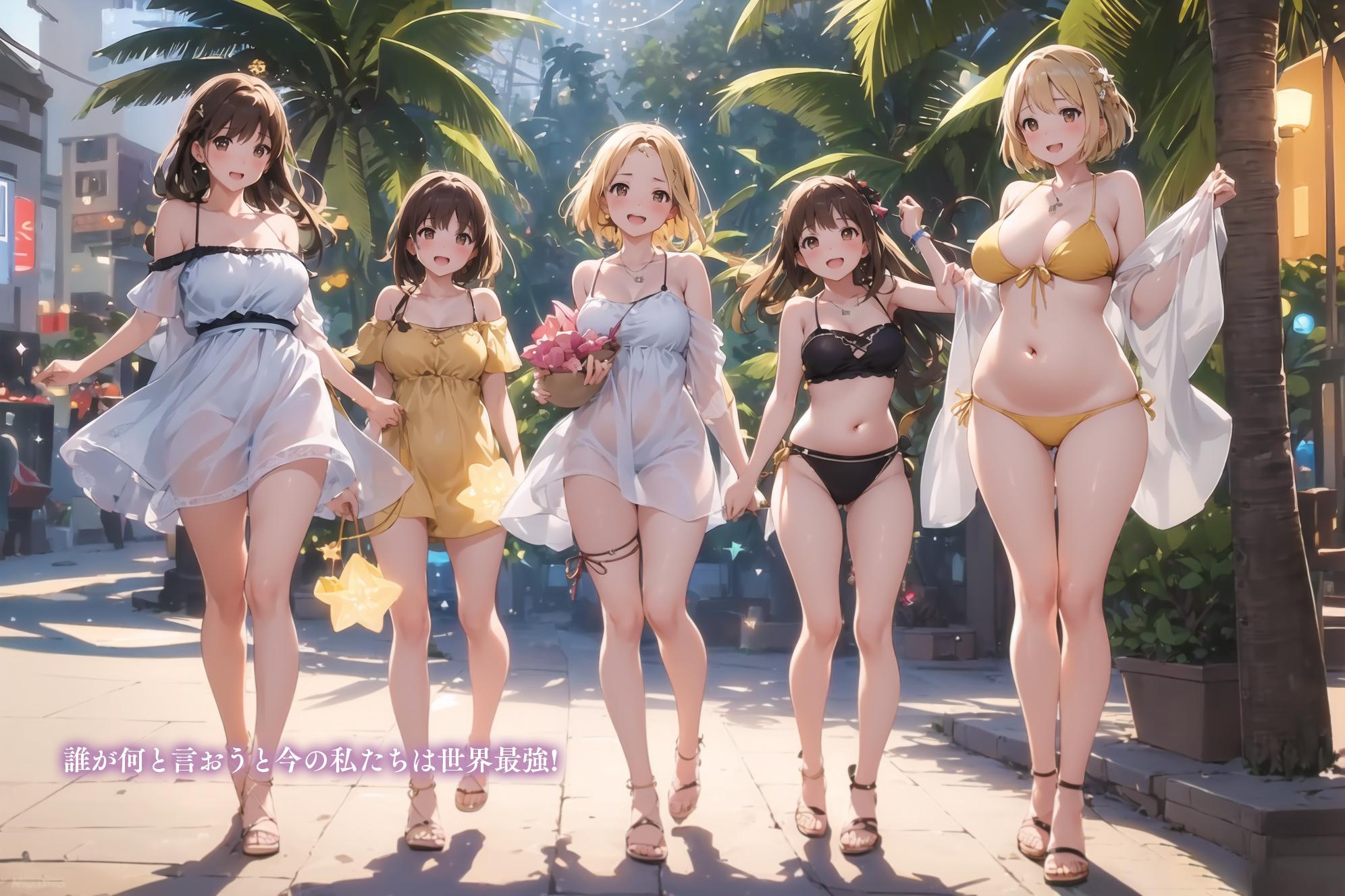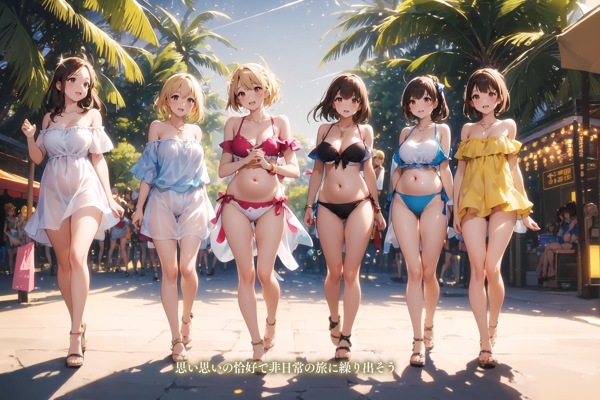 「仲良しグループの南国への卒業旅行」をテーマに生成してみました。