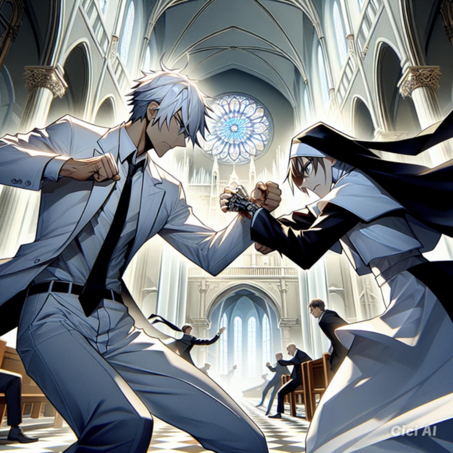 両雄は教会内で戦闘す