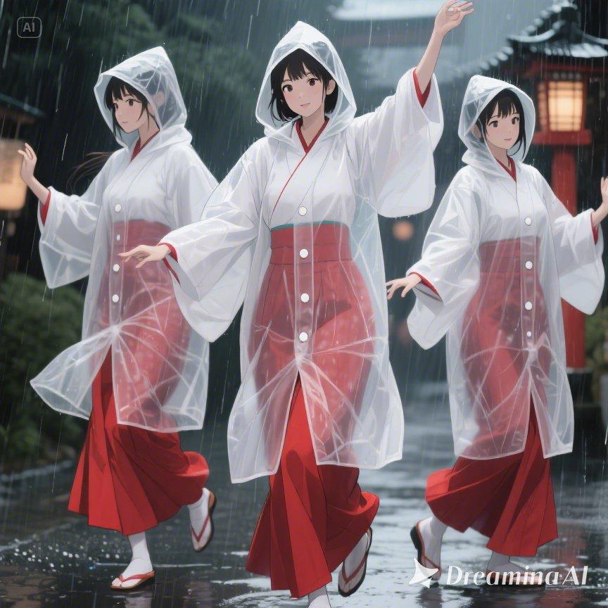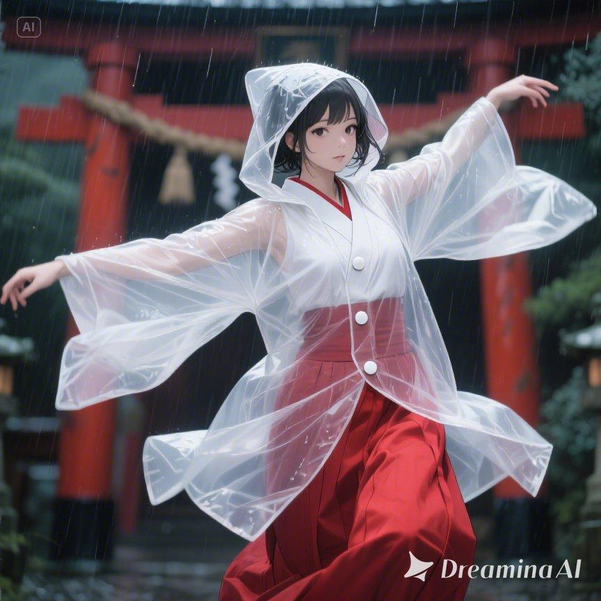 日本語プロンプトに対応したAIであれば、Dreamina以外でも使えるかもしれません(一応GrokとGoogle AI Studioでも、このプロンプトでレインコートを着た巫女さんが破綻なく生成されました)。