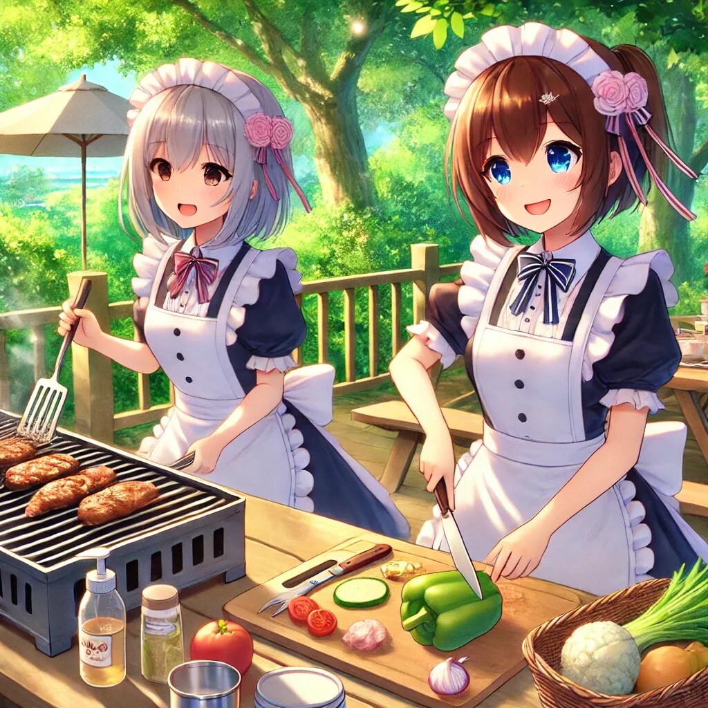 陽光と緑に囲まれた中で、楽しげにバーベキューをする様子がしっかり描かれていますね。