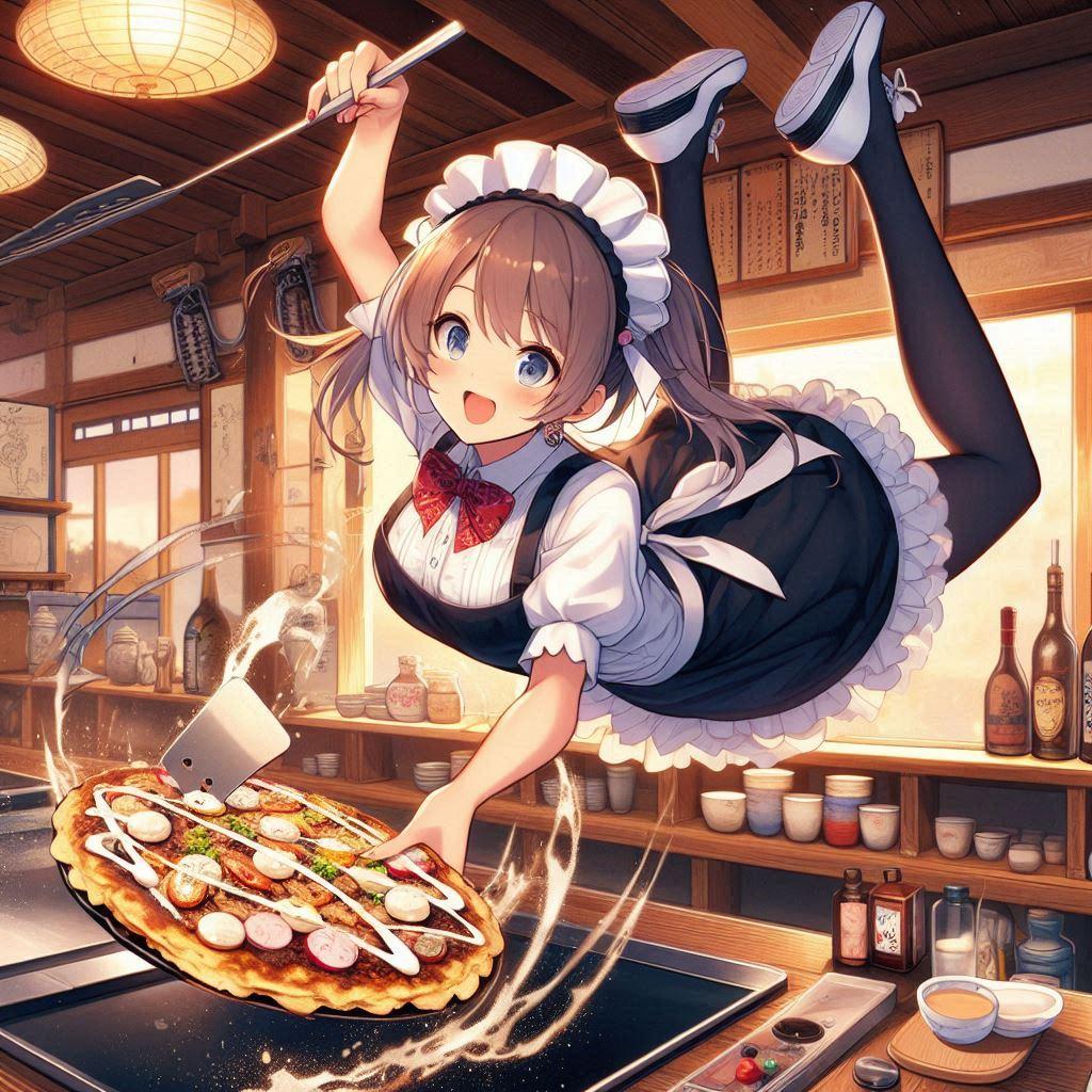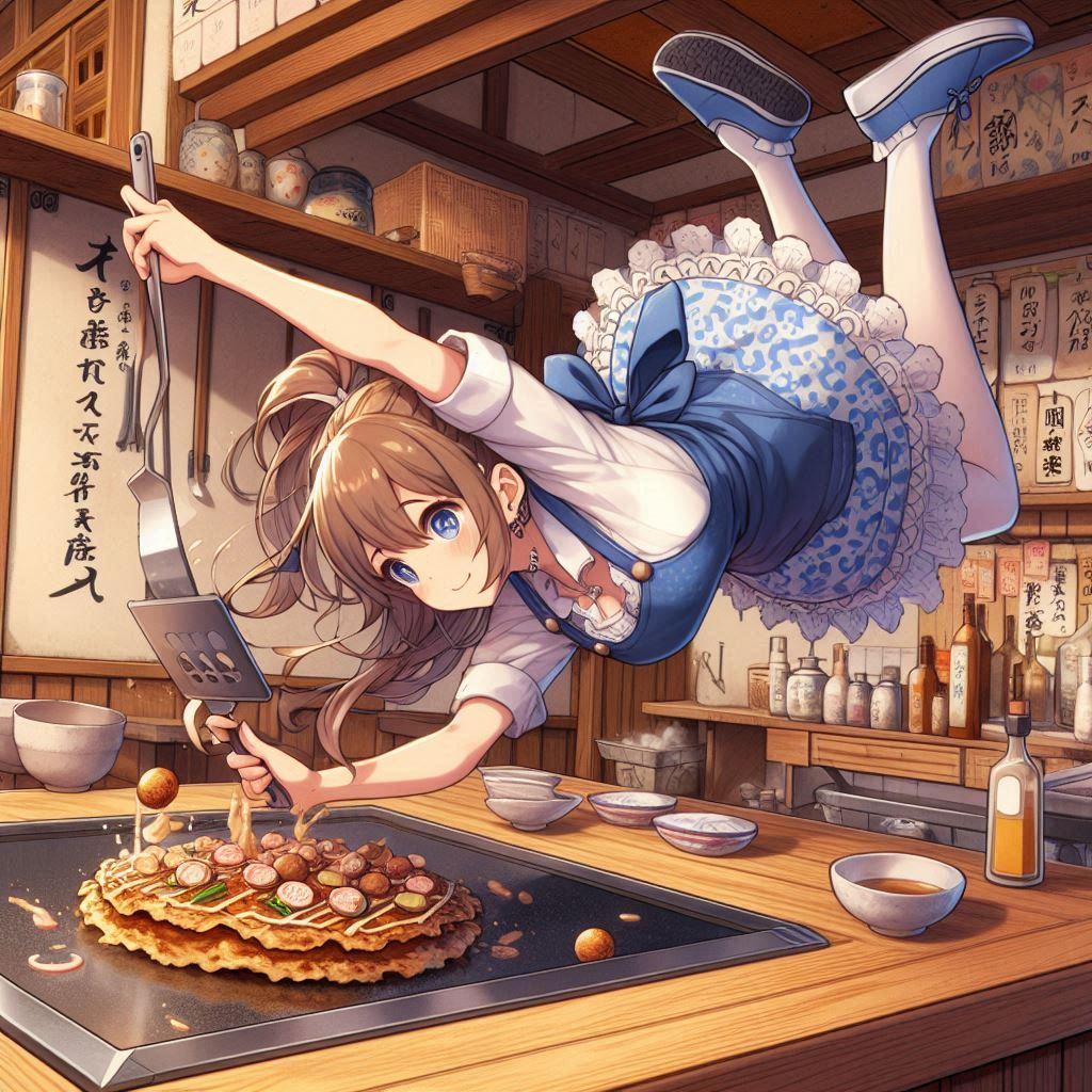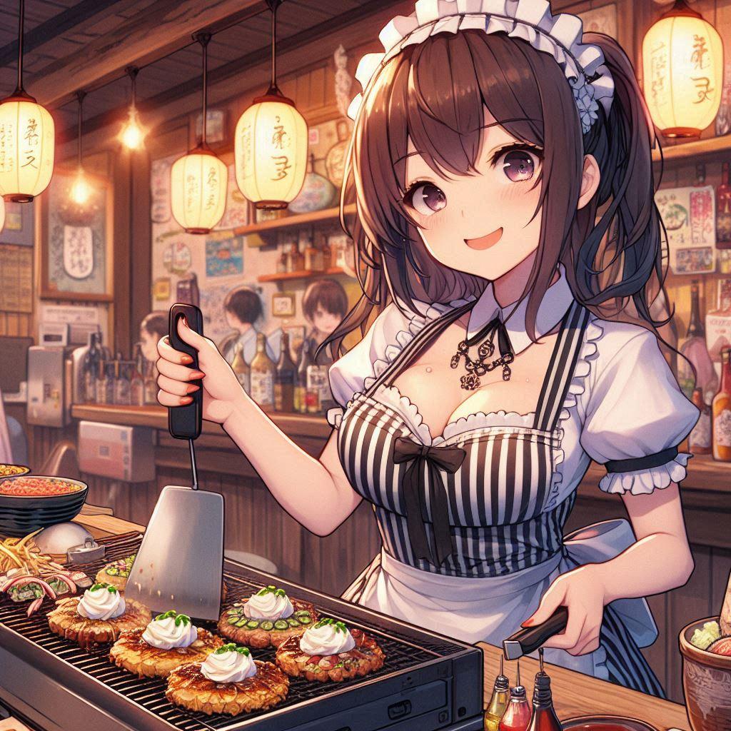 お好み焼きを焼く少女 (ウェイトレスの少女32)