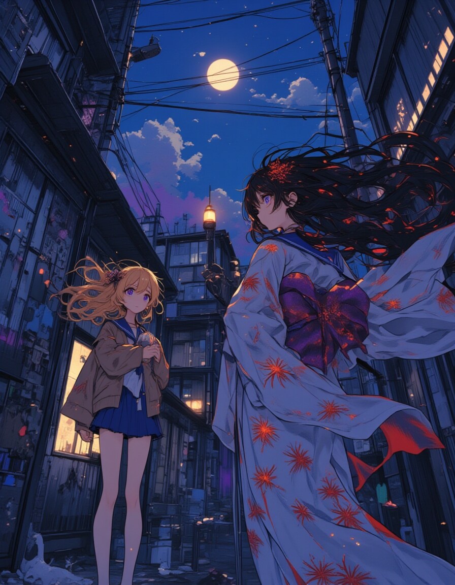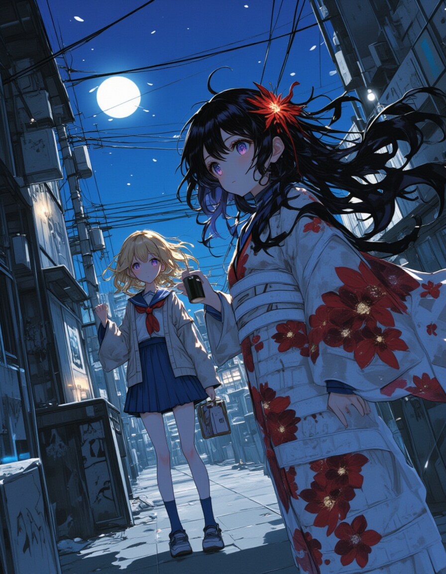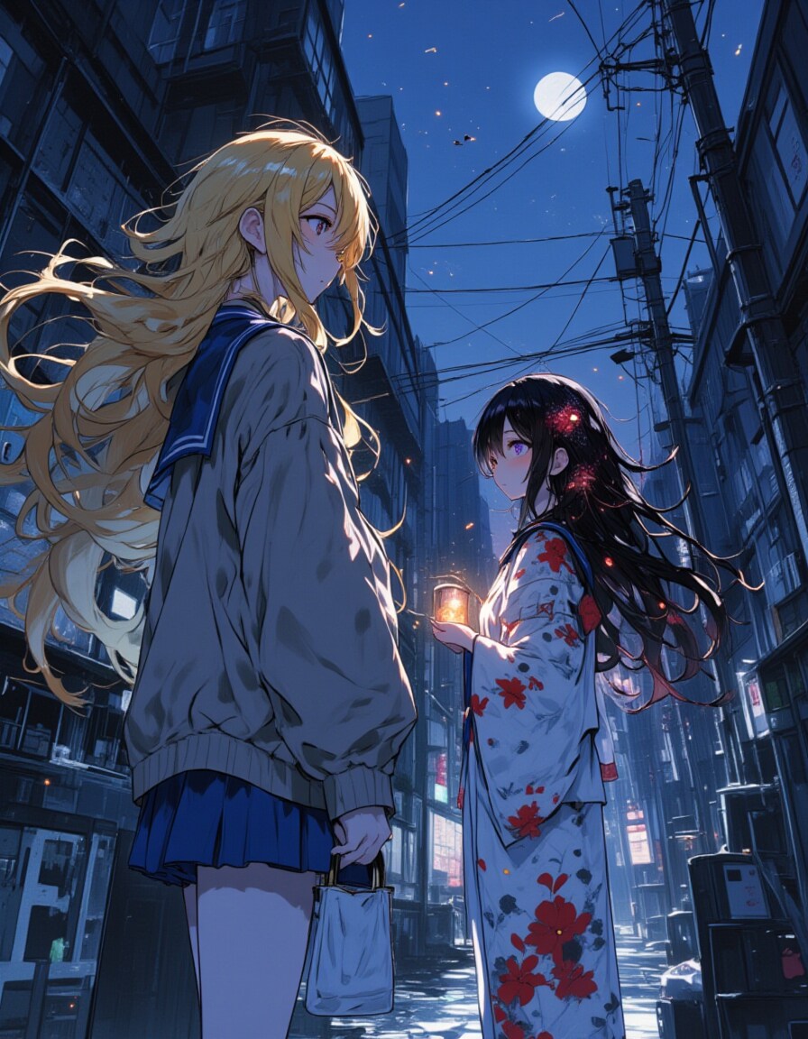 月夜に照らされた月光色。先ほど見たばかりの月光色の髪が靡いて、少女の美しい顔が現れる。