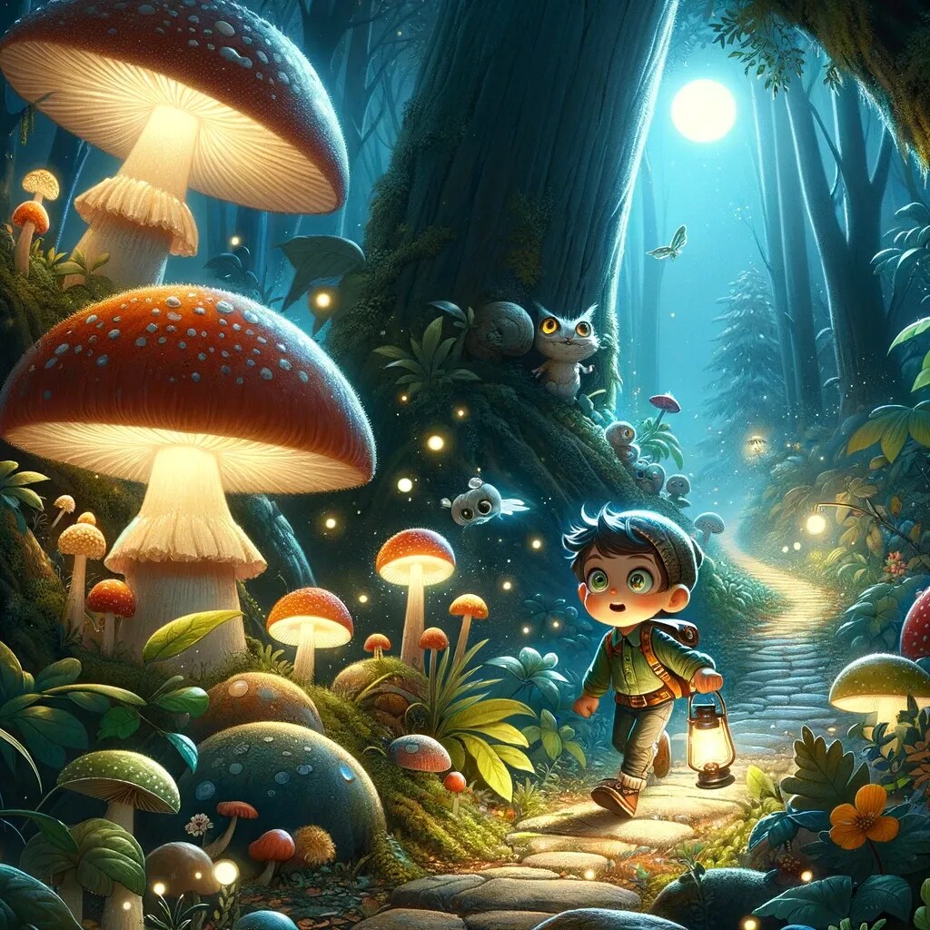 リュウの足元には、月明かりの下でかすかに光る小道が続いています。彼は恐れることなく、しかし慎重に一歩一歩を踏み出していきました。空気は魔法の粒子できらめき、葉っぱは古代の秘密を囁いているようでした。