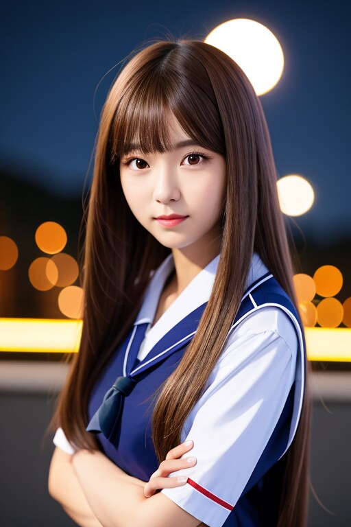 かわいいセーラー服の女の夜景夜景