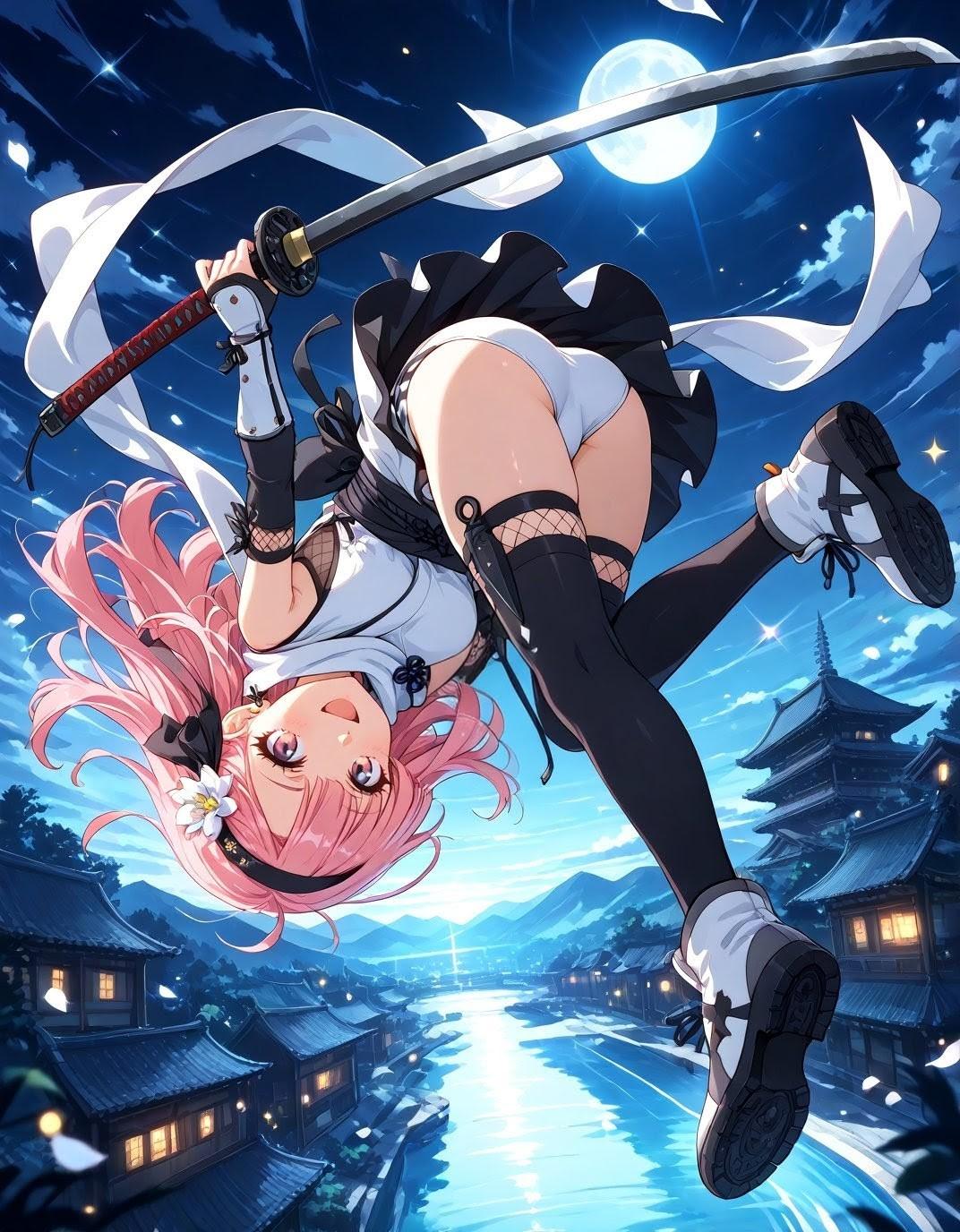 忍者要素もあるので、忍者っぽいポーズをとらせてみました。