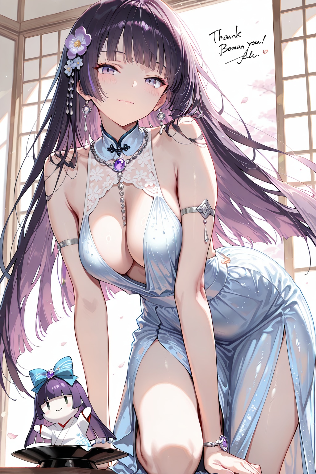 ちなみに絵梨奈ちゃんが着てるドレスのプロンプトは elegant white and blue dress with delicate fine-lace,