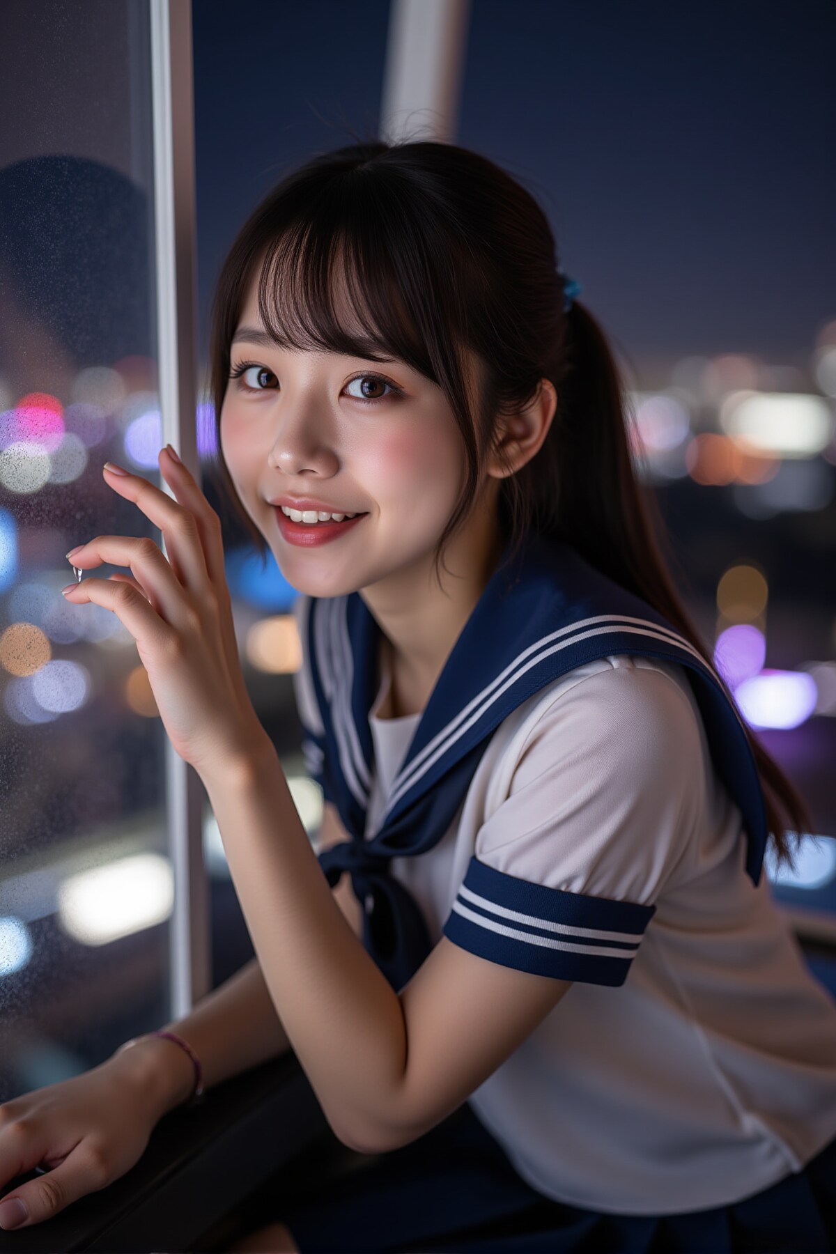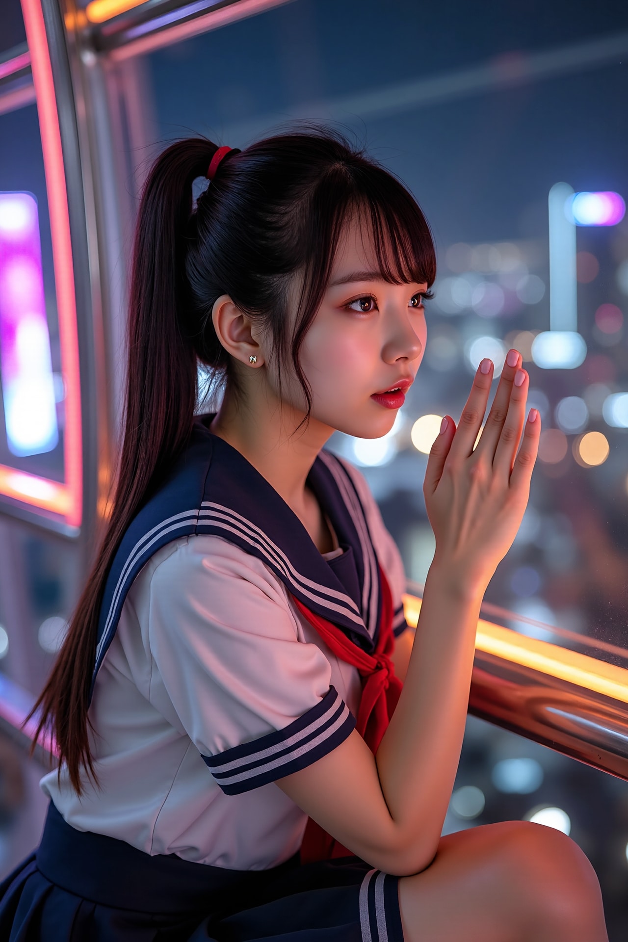 観覧車内と洗車?内の舌村みらいです!年齢とJK制服でソレっぽいかな😄