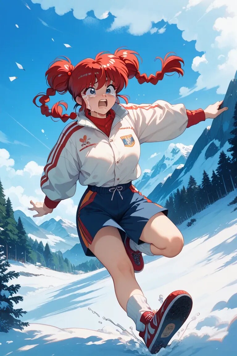 こちらはスノボで転びかけてる上に、雪山を舐めたような格好。