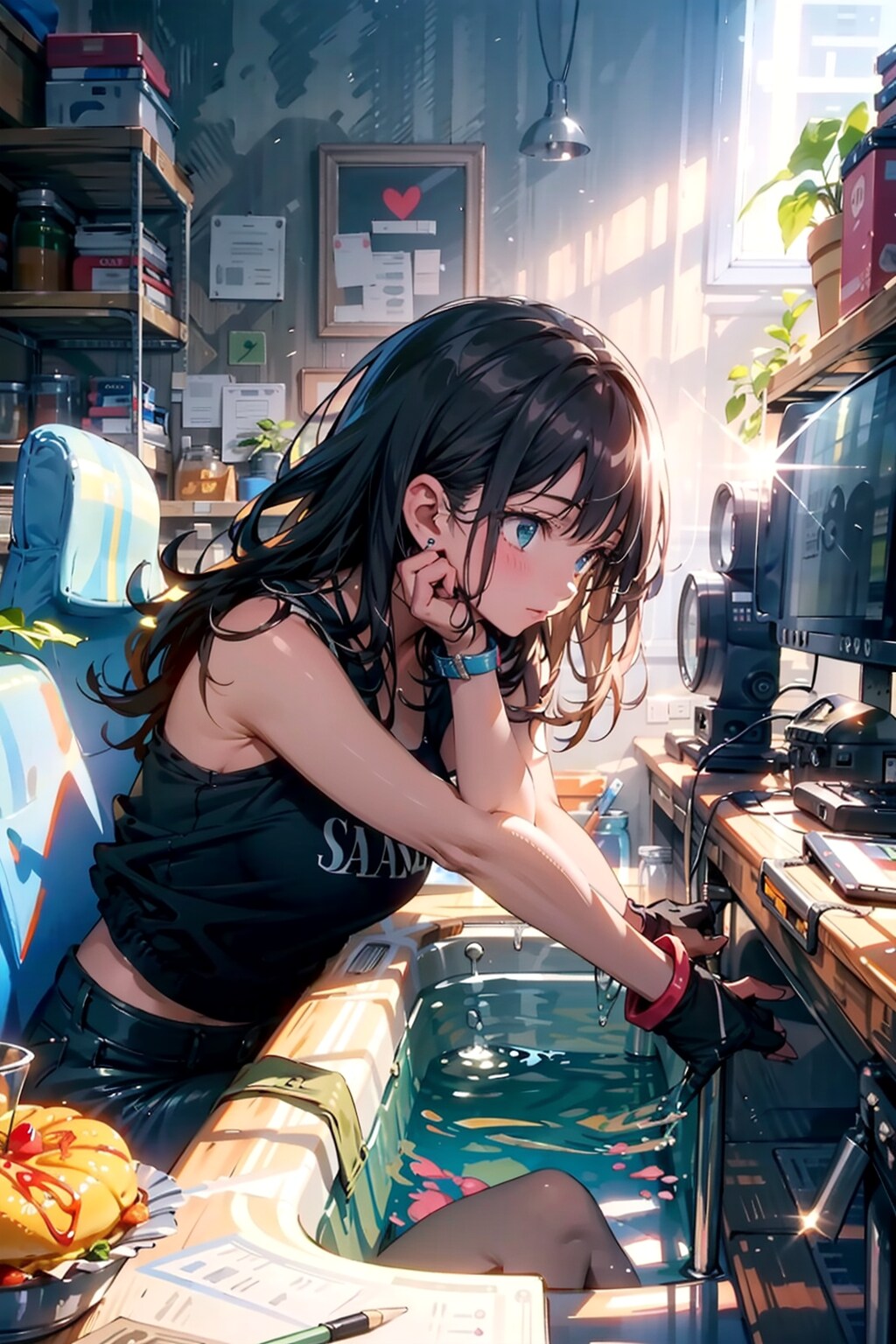 ソファに湯を張ってしまう少女。
