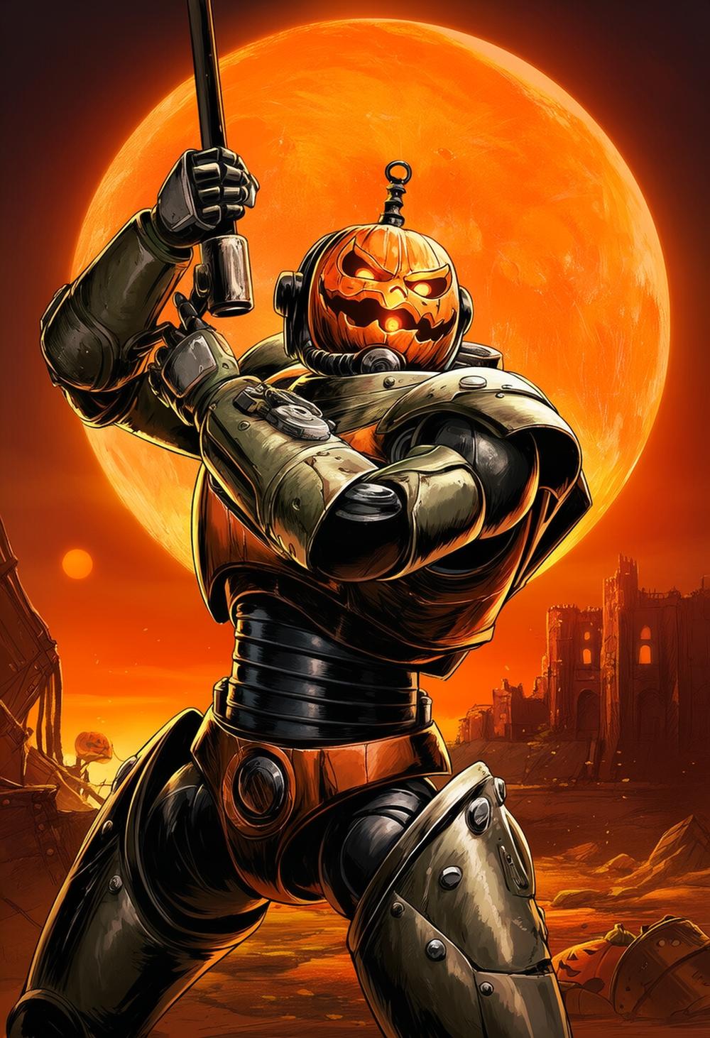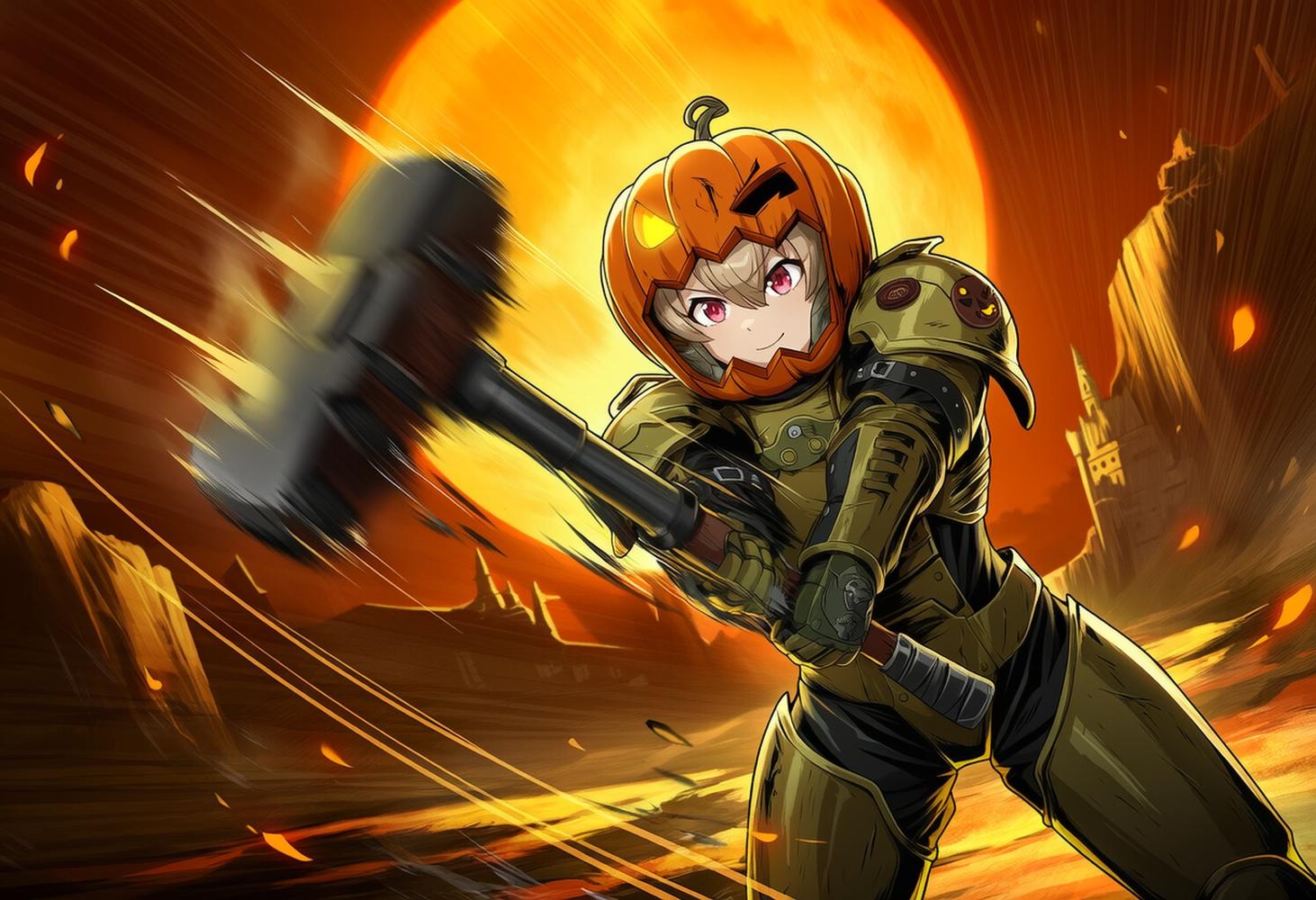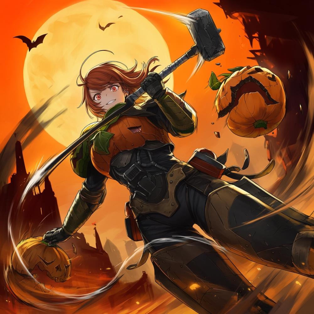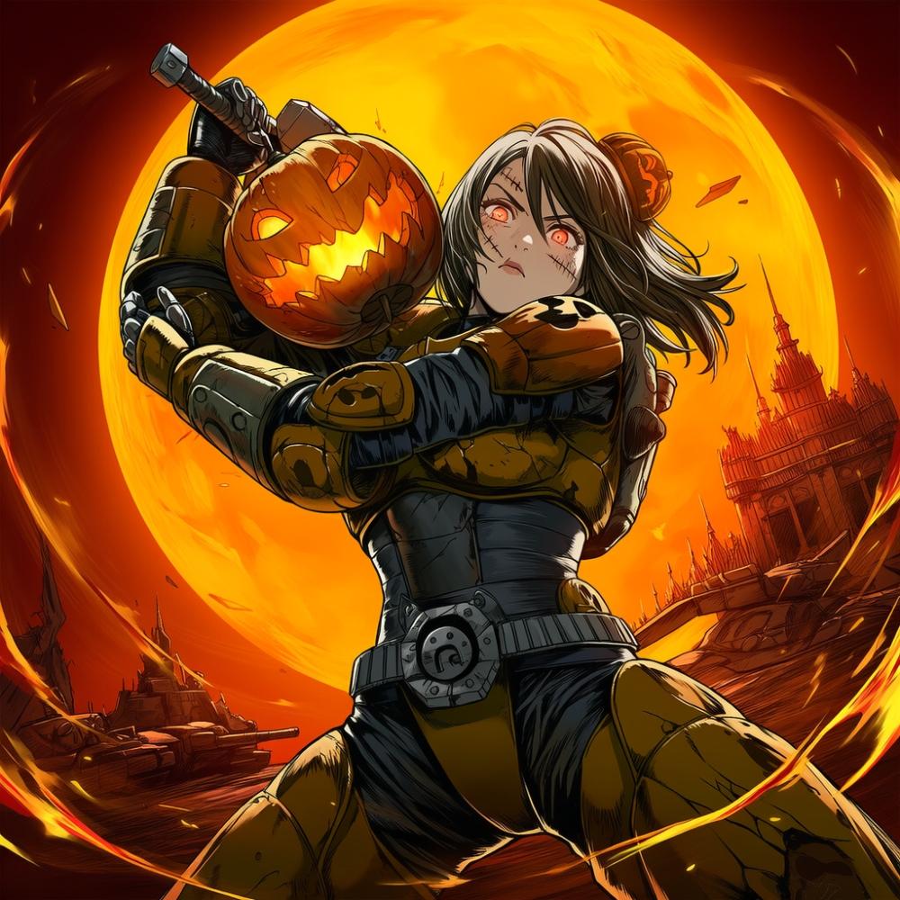 ハロウィンカボチャアーマーコスプレ人妻&世紀末パワーアーマー